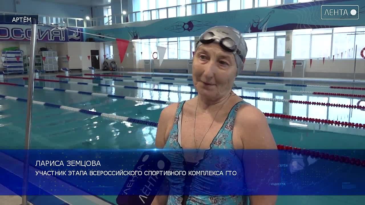 На этот раз на дорожках бассейна в Артёме самые старшие. ГТО сдают категории: 65-69 лет и от 70 лет и старше
