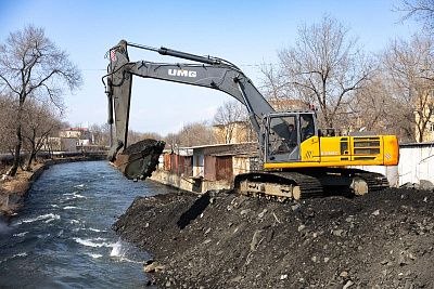 Во Владивостоке продолжаются работы по расчистке и дноуглублению реки Объяснения.