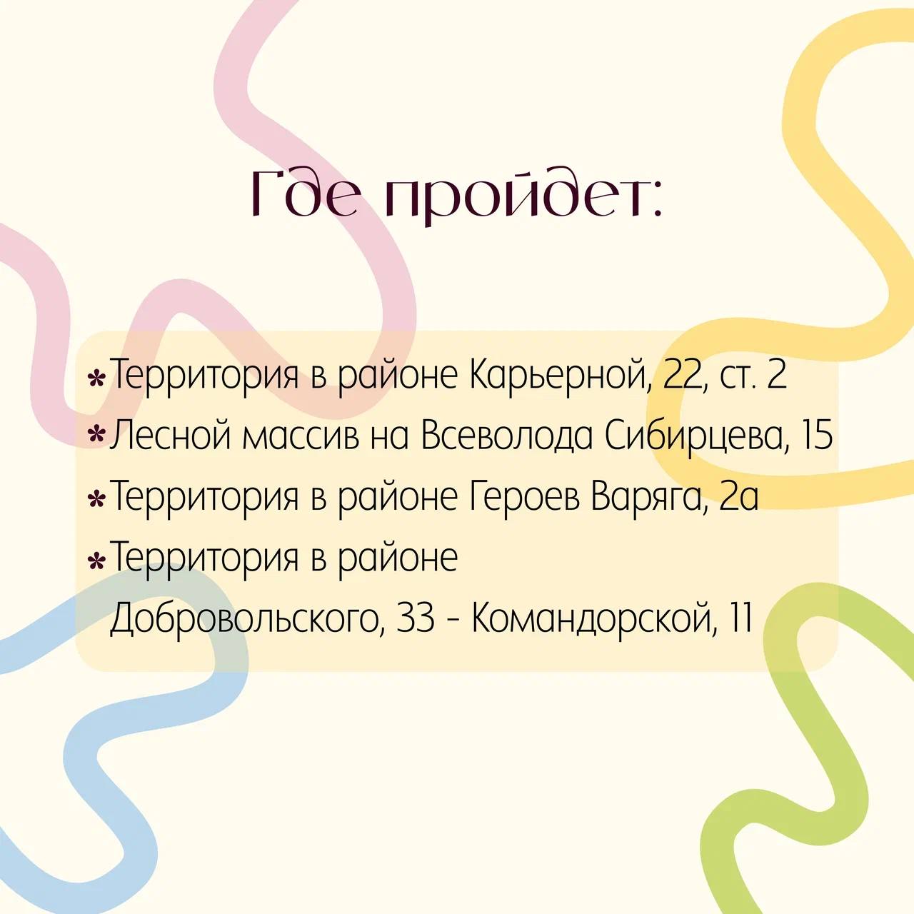 К акции присоединятся предприятия, ТСЖ, управляющие компании, депутаты, школы, детсады, больницы, а также учреждения культуры и спорта. Старт – в 10:00. Для всех желающих предусмотрели перчатки, мешки и инвентарь для уборки – выдадут на месте.