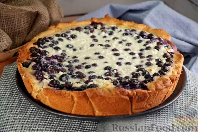 - Тарт с творожно-ягодной начинкой — открытый пирог с нежным слоем творога и свежими ягодами черники или голубики станет ярким акцентом на любом столе.
