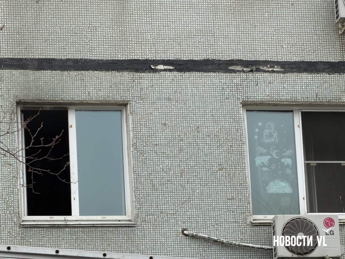 Куски облицовки рухнули на припаркованный рядом автомобиль.Источник: @NBS24Подпишись на NewsVL.ru