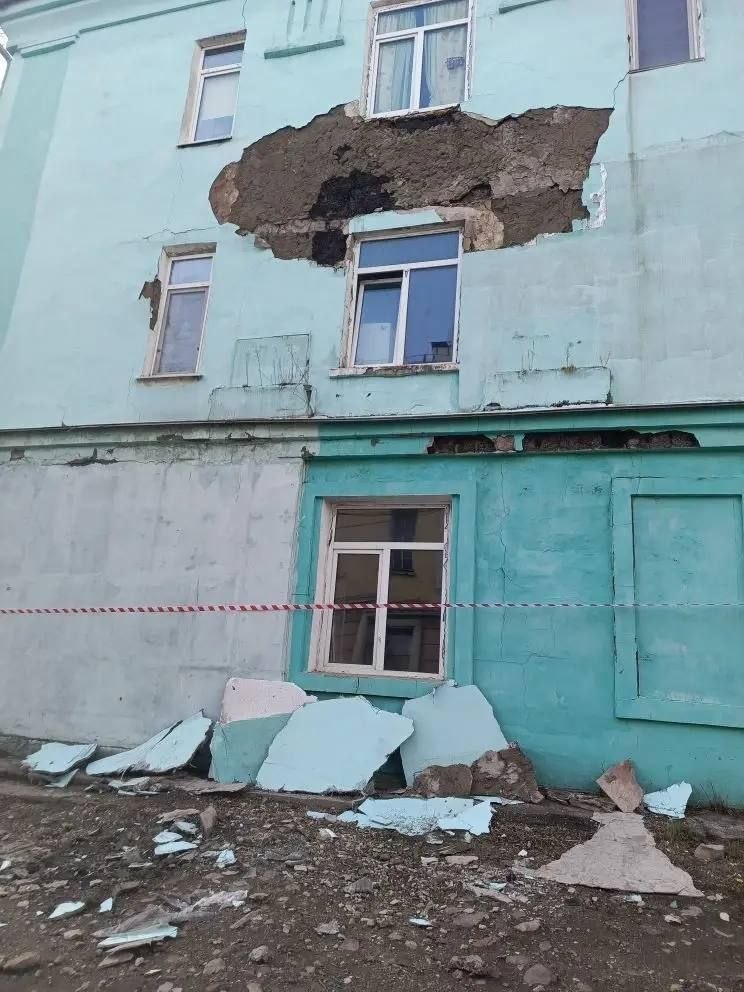 На этой неделе на Пихтовой, 71 произошло обрушение частичное обрушение фасада жилого дома. Куски облицовки рухнули на припаркованный рядом автомобиль.