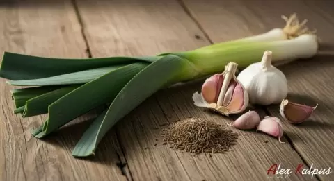 Приготовление этого блюда начинается с отборного лука-порея. Молодые стебли с тонкими листьями идеально подходят для фаршировки, сохраняя свою форму и текстуру. Грецкие орехи, найденные в грузинских садах, добавляют в блюдо уникальный кремовый вкус благодаря высокому содержанию масла и насыщенному аромату.