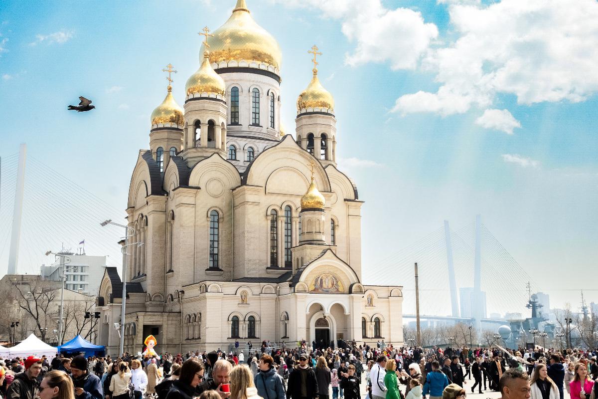 Днем 12 апреля жителей и гостей Владивостока приглашают отметить праздник Светлой Пасхи. На центральной площади города в этот день выступят фольклорные коллективы, будут работать локальные площадки, пройдет освящение и раздача пасхальных яиц.