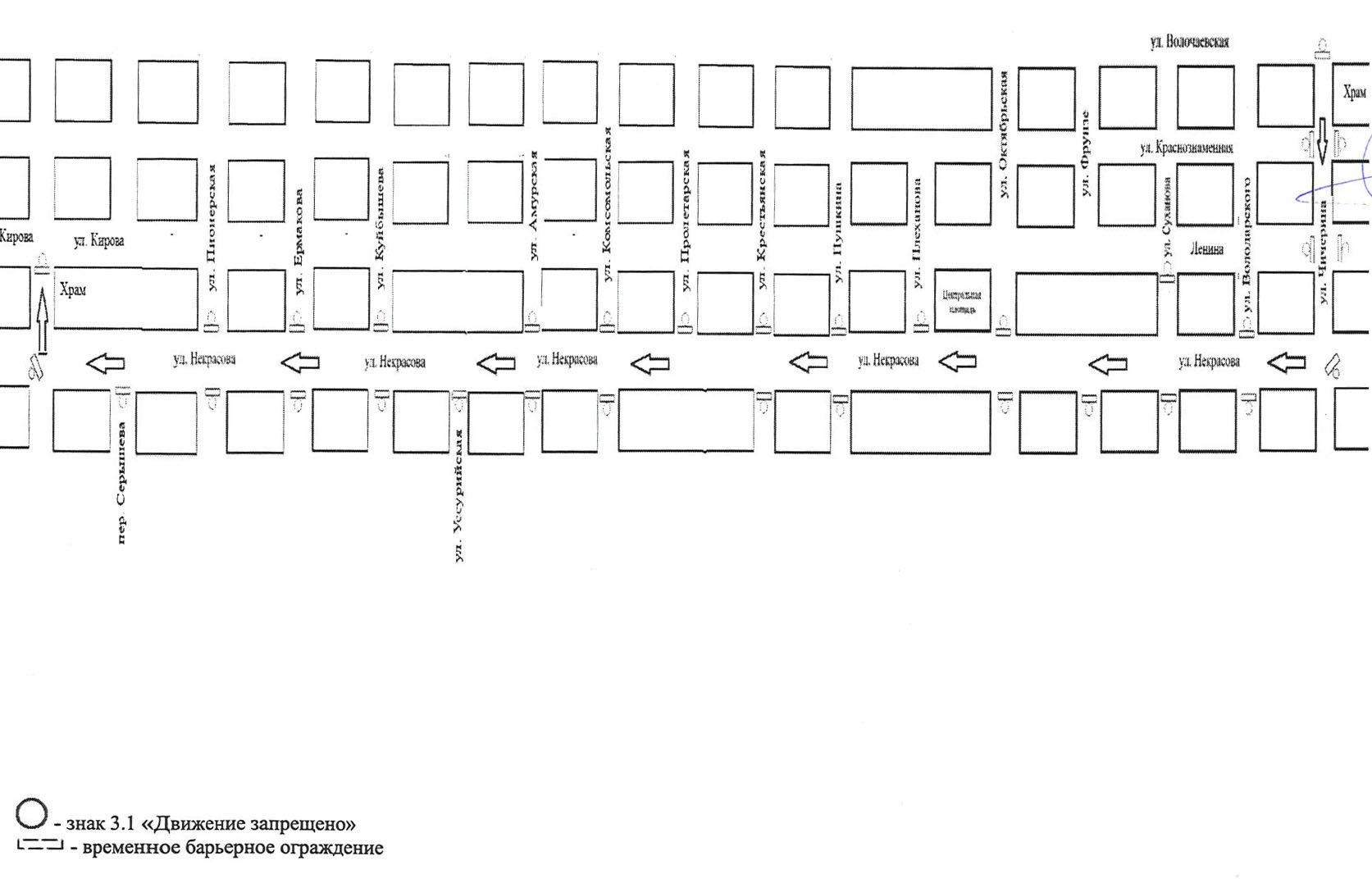 Маршрут следования Крестного хода: по ул. Чичерина от ул. Волочаевская до ул. Некрасова, по ул. Некрасова от ул. Чичерина до ул. Комарова, по ул. Комарова до храма святителя Николая Чудотворца ул. Комарова, 58