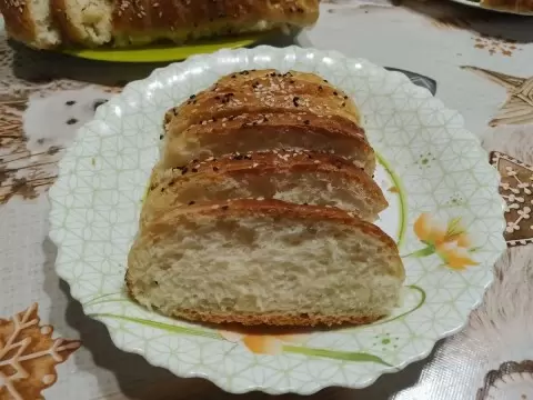 11) Готовые батоны обсыхают под полотенцем, после чего их можно разрезать на ломтики и угощать близких.