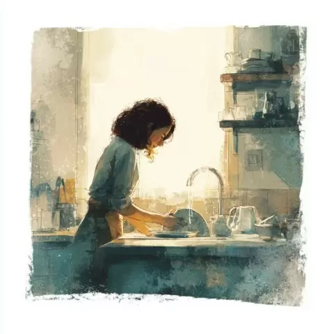 Лучшие моменты для ручного мытья посуды случаются, когда дом тих и спокоен. Идеальное время — когда младший ребенок спит, старший поглощен игрой, а другие члены семьи заняты своими делами. В такой обстановке возникает ощущение полного покоя, и именно тогда внимание сосредотачивается на самой рутине — мытье посуды.