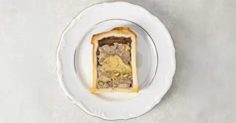 - Пате-крут с фуа-гра и фисташками или с клубничным желе и шампанским остаётся звездой меню. За 520 рублей за 100 граммов это деликатес, который не оставит равнодушным.