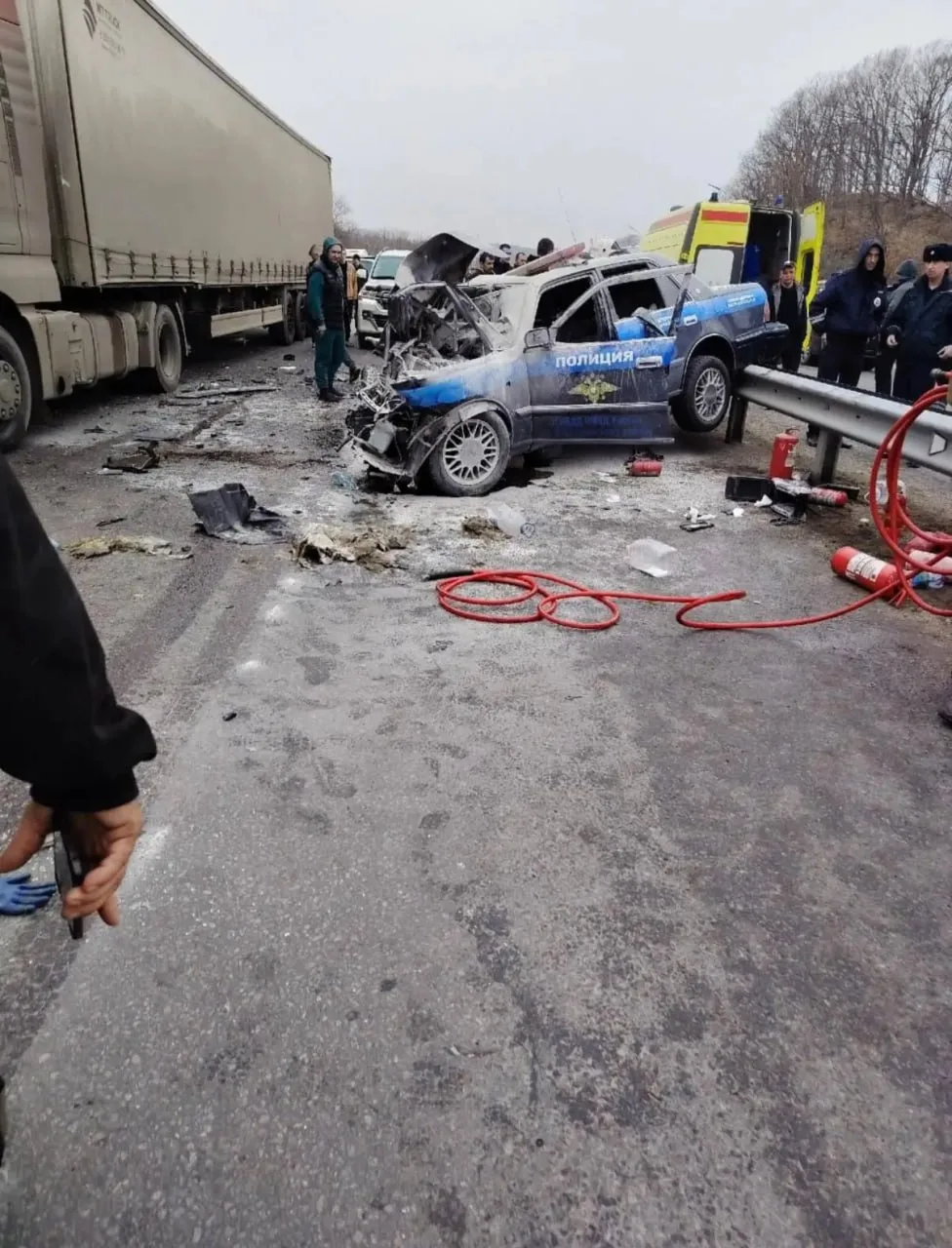 Полицейские преследовали 50-летнего водителя на Suzuki Skywave 250 с включенными спецсигналами. Во время погони из-за высокой скорости экипаж не справился с управлением, и в районе Тавричанки патрульный автомобиль столкнулся с грузовиком Hino.