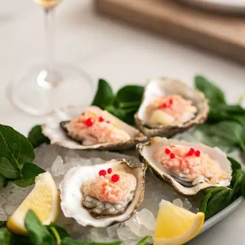 Начать стоит с изысканных устриц, которые станут настоящим началом вечера. Эти морепродукты, известные как афродизиаки, сочетаются с гранитой из шампанского — сладкая и игристая нотка придаст блюду изысканности. Устричная закуска не только поразит вкусом, но и создаст атмосферу романтики с первого мгновения.