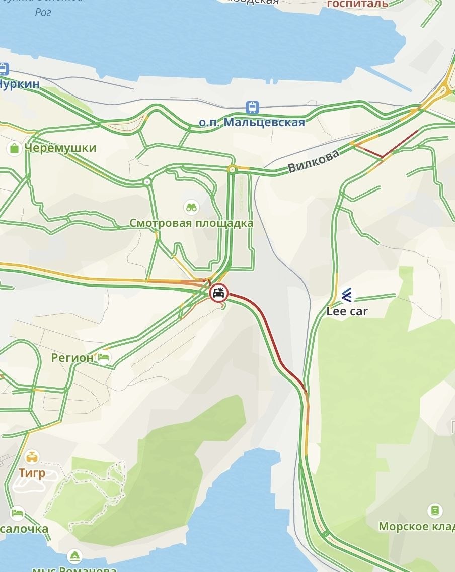 Из-за ДТП в районе Окатовой собралась пробка со стороны Героев-Тихоокеанцев.