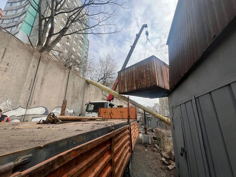 На улицах Аллилуева, 6, Владикавказской, 14в, Пушкинской, 50 на этой неделе сносят незаконные гаражии и контейнеры. Имущество отправляют на площадку временного хранения.