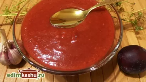 Сливы следует превратить в пюре, используя блендер или сито. Готовую массу возвращают на медленный огонь, добавляя чеснок и специи: зонтики укропа и кинзы, а также хмели-сунели. Не забудьте произвести пробу на соль и сахар — эти ингредиенты добавляются в зависимости от вкусовых предпочтений. Готовить соус нужно примерно 10-20 минут, чтобы он загустел.