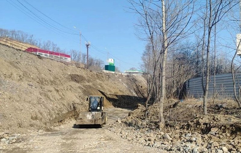 В подрядной организации АО «СпецСУ» сообщили, что на объекте демонтируют существующий тротуар и старые опоры уличного освещения, устраивают насыпь из скального грунта, а также продолжают разбирать земляное полотно.