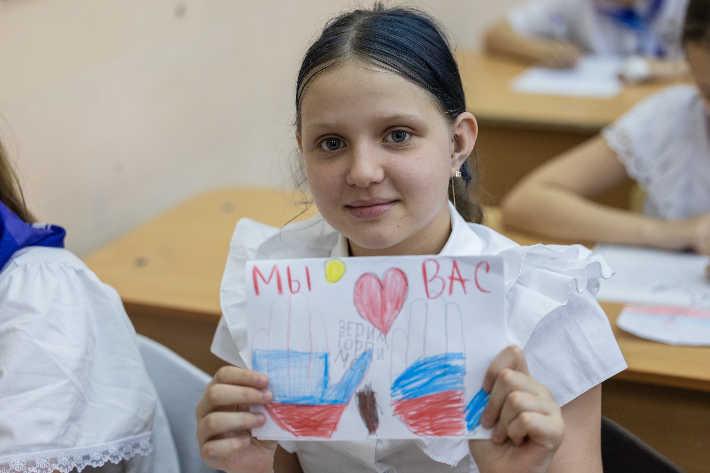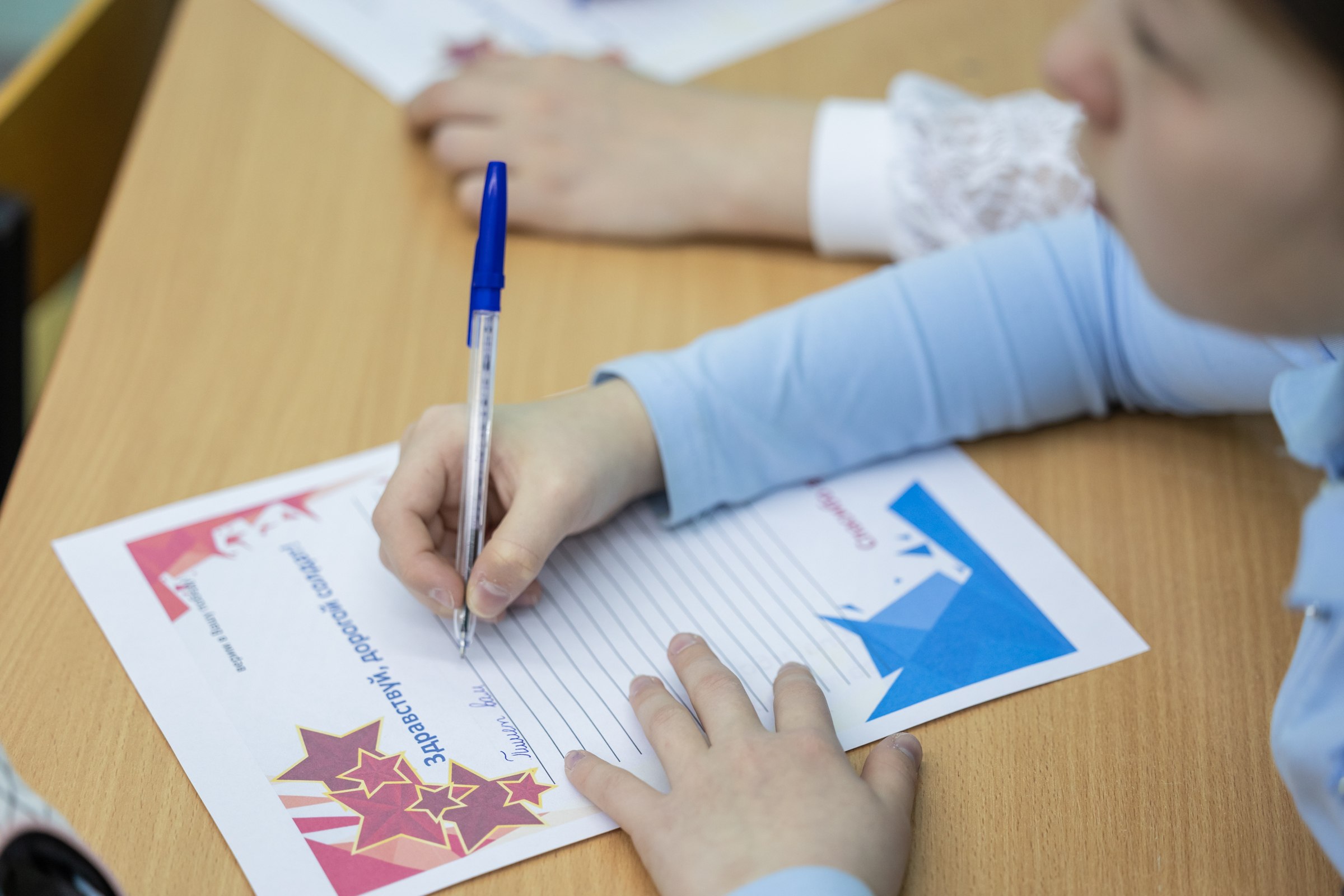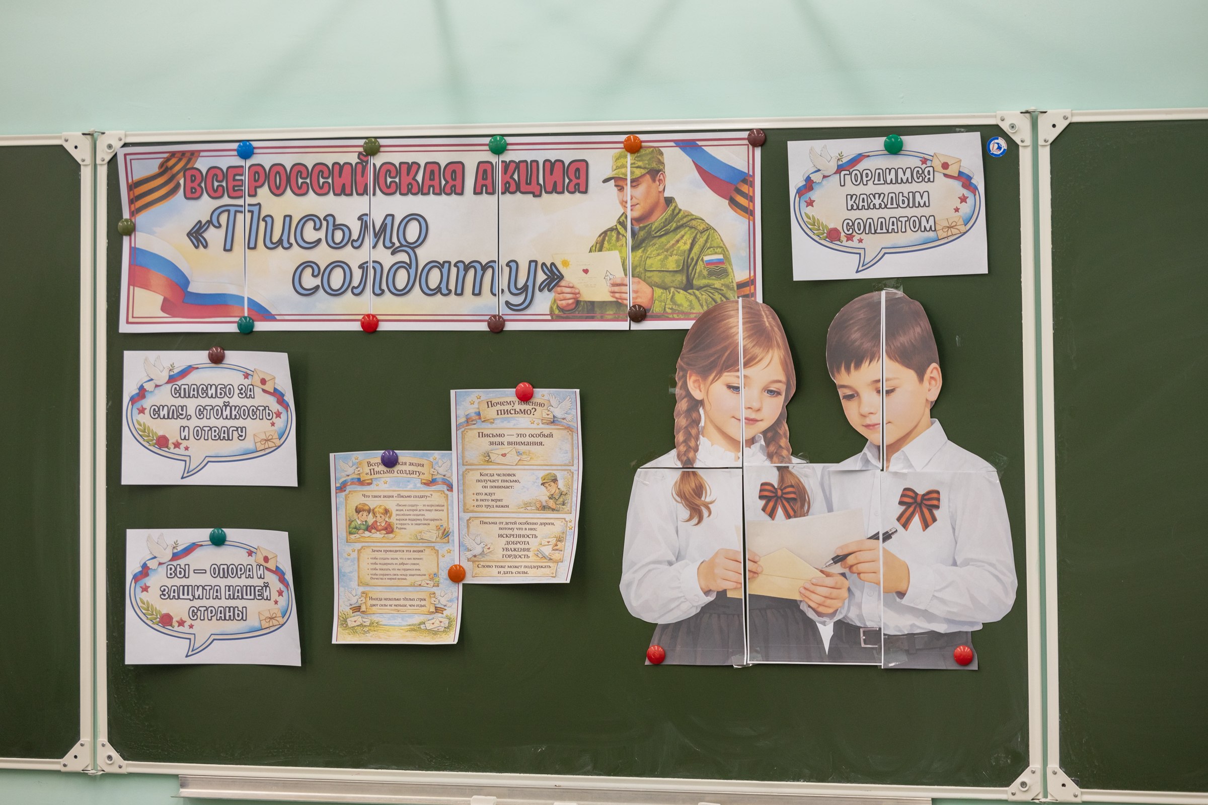 Ребята очень искренне готовили послания бойцам. Они рассказывают о себе, о школе, о городе, делятся новостями и обязательно пишут слова благодарности и поддержки. К письмам школьники добавляют рисунки — яркие, наполненные теплом и детской верой в светлое будущее.