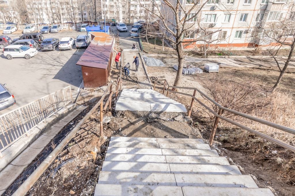 Во Владивостоке начался ремонт лестницы между домами №24 и №34 на улице Карбышева. Работы выполняет подрядчик по заказу городской администрации.