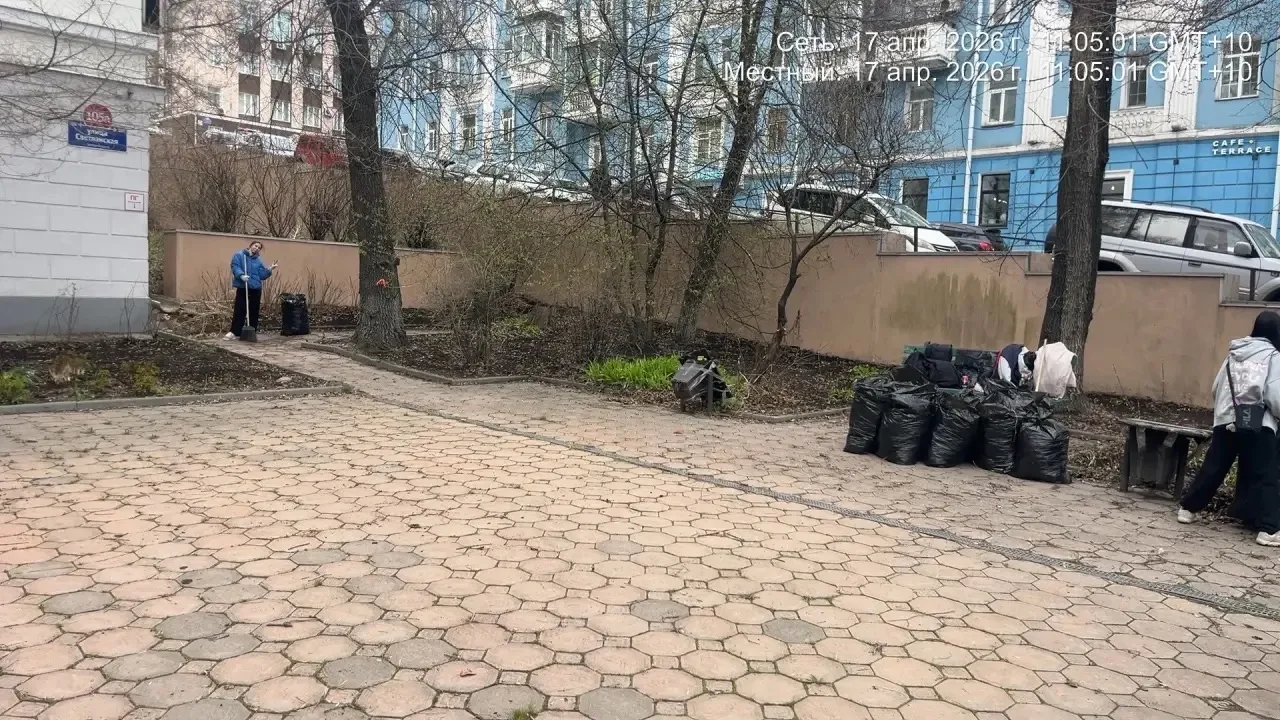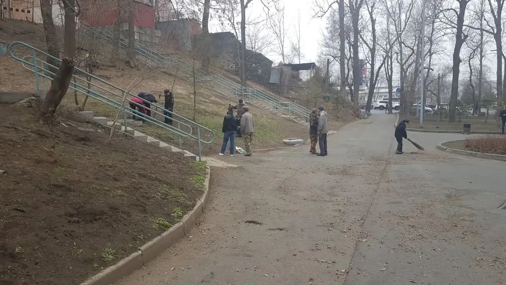 Специалисты провели уборку на территории Владивостокского базового медицинского колледжа: собрали мусор, убрали сухие ветки и привели участок в порядок.