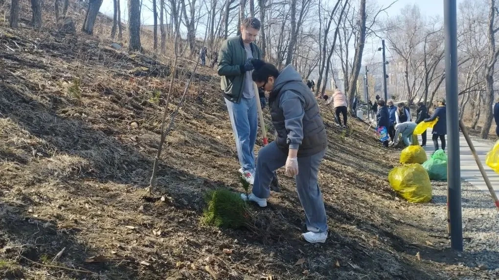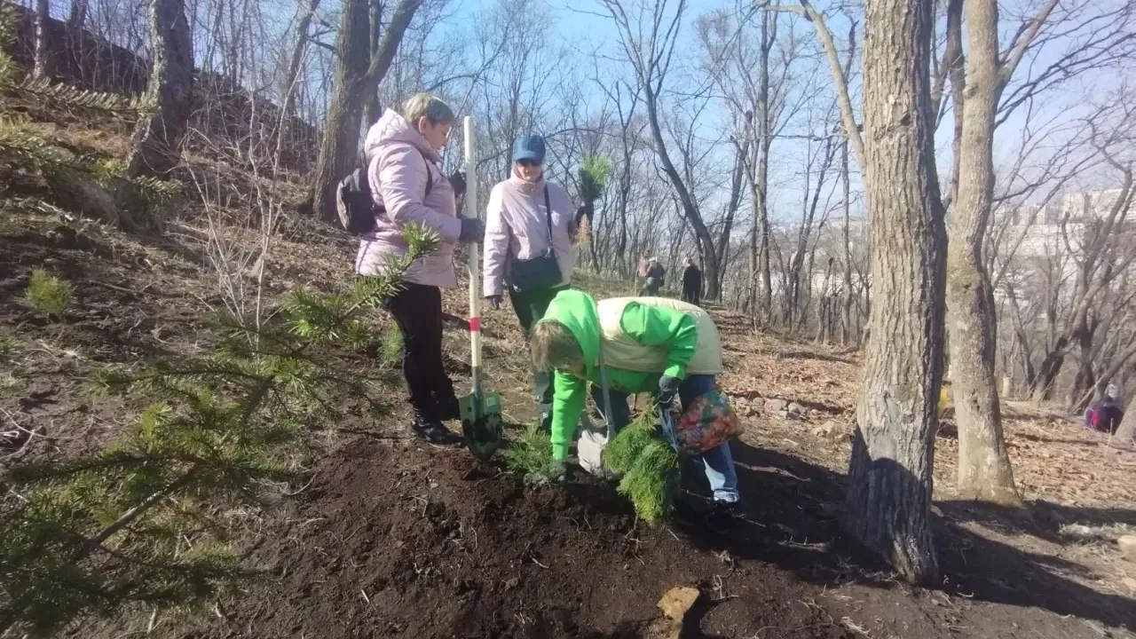 Во Владивостоке на субботнике высадили более 6 тысяч сеянцев кедра и абрикоса.
