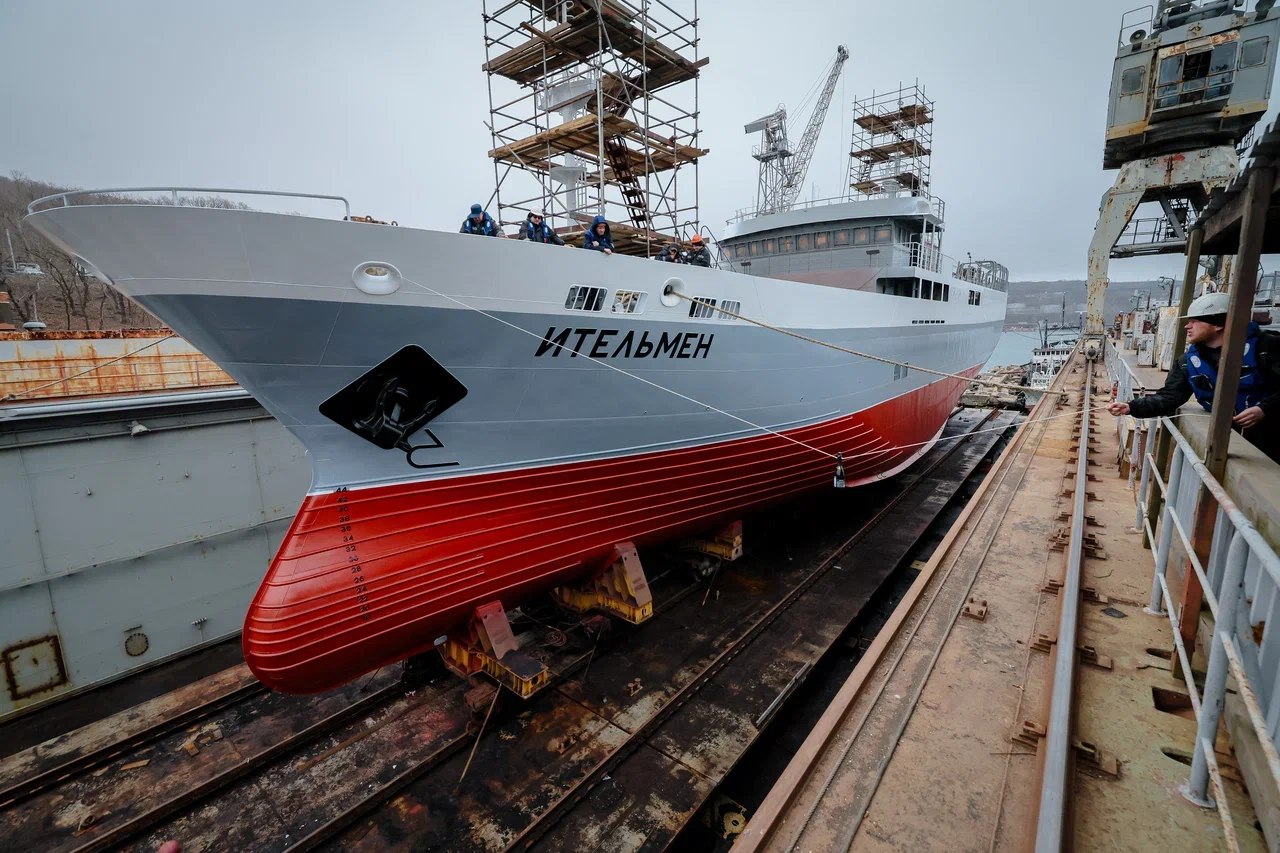 На «Восточной верфи» состоялась торжественная церемония спуска на воду краболовного судна «Ительмен» проекта 03141. Это десятое из серии судов-краболовов, строящееся на предприятии в рамках государственной программы инвестиционных квот. Оно предназначено для добычи и транспортировки краба в живом и переработанном виде.