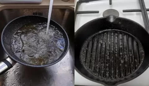 Один из эффективных способов удаления нагара — это комбинация соли и горчицы. Просто добавьте по столовой ложке этих ингредиентов в сковороду, залейте кипятком, подождите пять минут, а затем тщательно протрите щеткой.