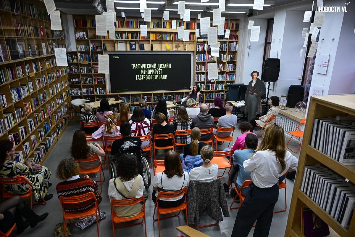 В прошедшие вечер и ночь небольшое помещение читального зала библиотеки «Бук» на Светланской, 55 во Владивостоке изменило формат и превратилось в площадку, на которой жители и гости города создавали коллажи, слушали лекции о дизайне и гастрономии, играли в квиз и обменивались книгами. Именно так проходила ежегодная всероссийская акция «Библионочь-2026», которую, отмечают организаторы, люди ждали весь год.
