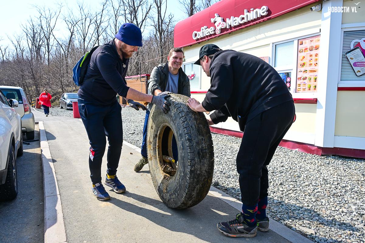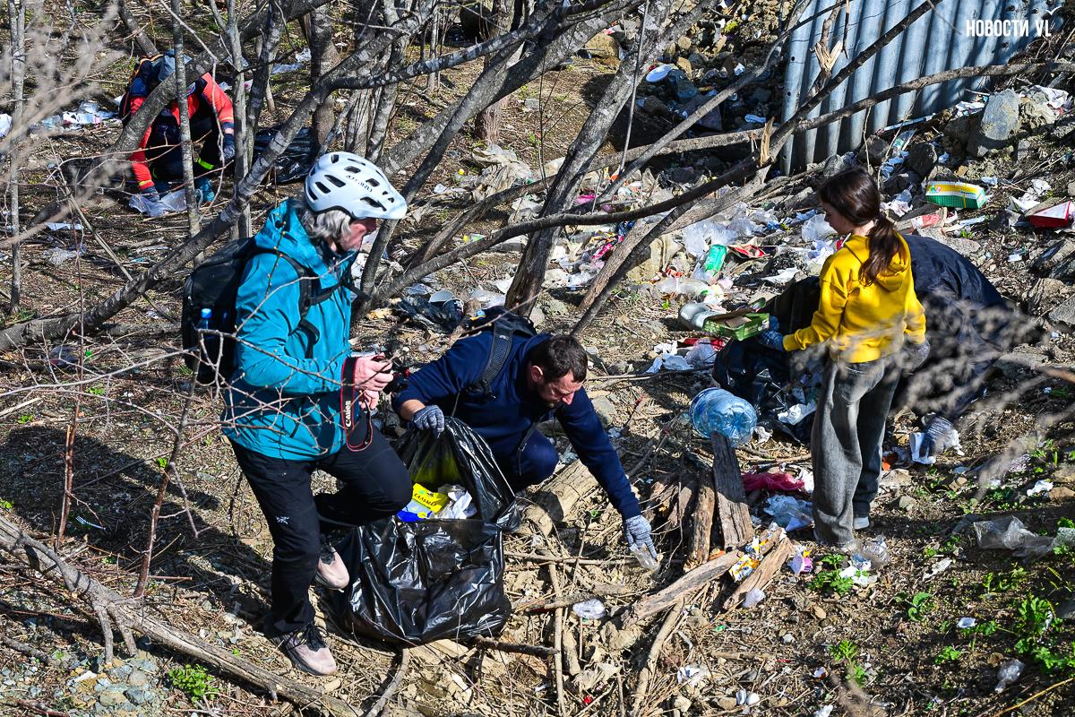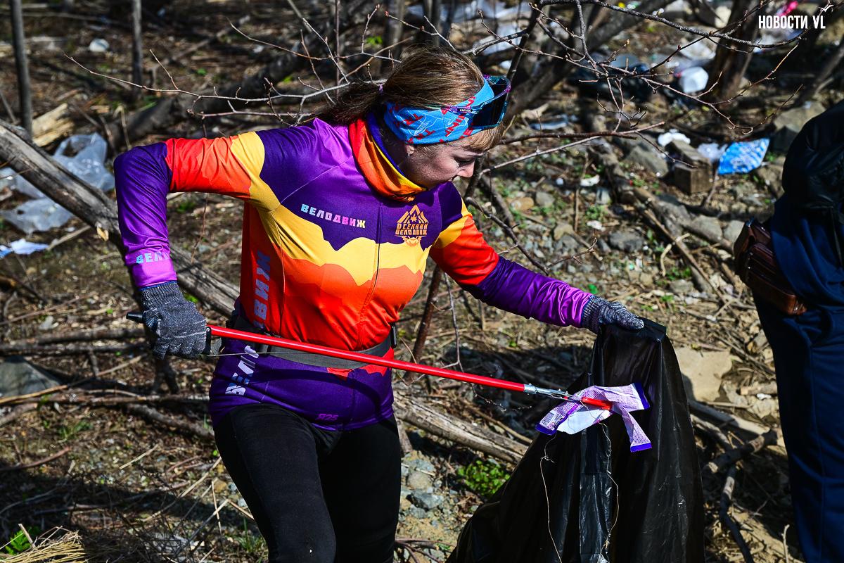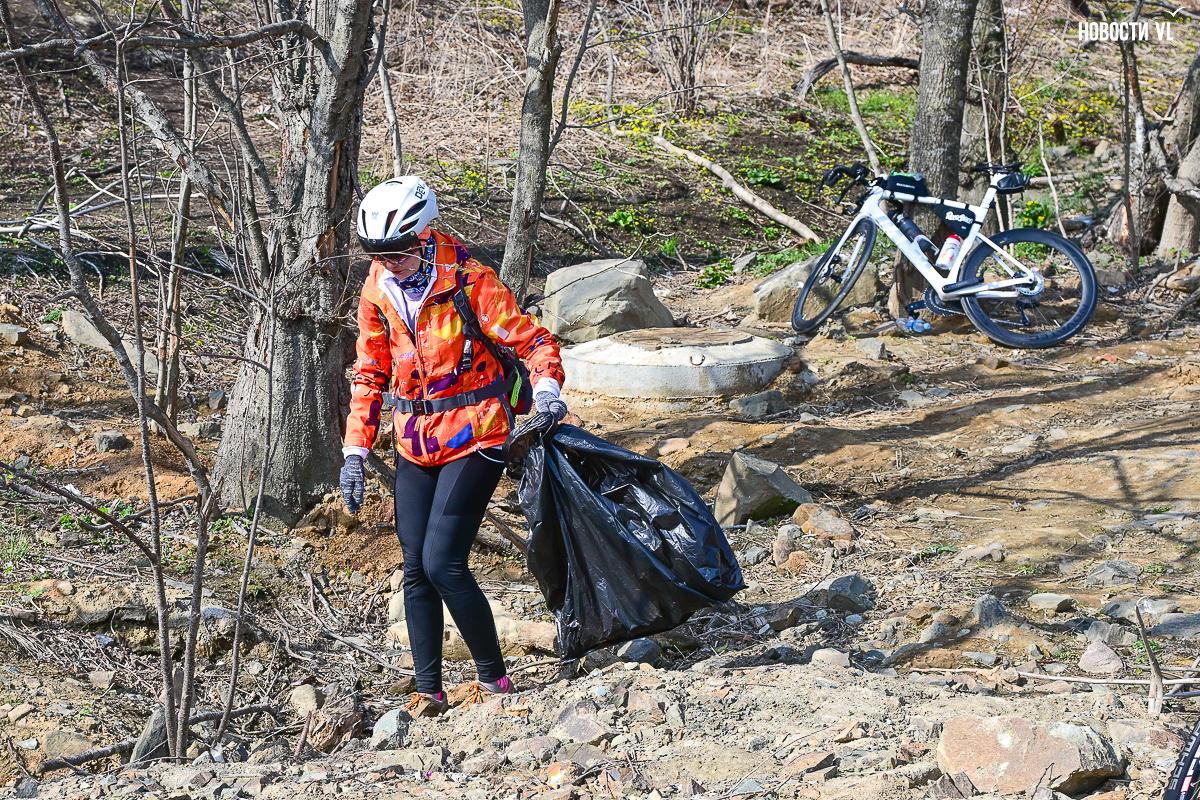 Мусор убирали в месте, где новая велотропа, ведущая к полуострову Житкова, соединяется с велосипедной дорогой до мыса Ахлёстышева. помимо бытовых отходов во время субботника в лесу нашли довольно новые автомобильные шины, проржавевшие болты и гайки. Всё, что удалось собрать, расфасовали по нескольким мешкам и сбросили в контейнер. По договорённости с организаторами, вечером собранные отходы отправятся на полигон ТБО.