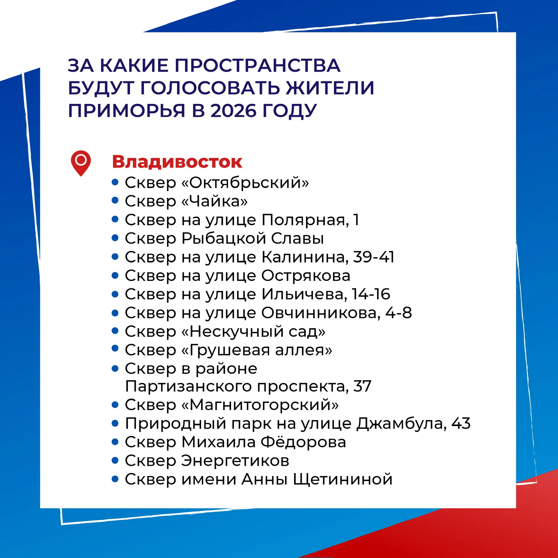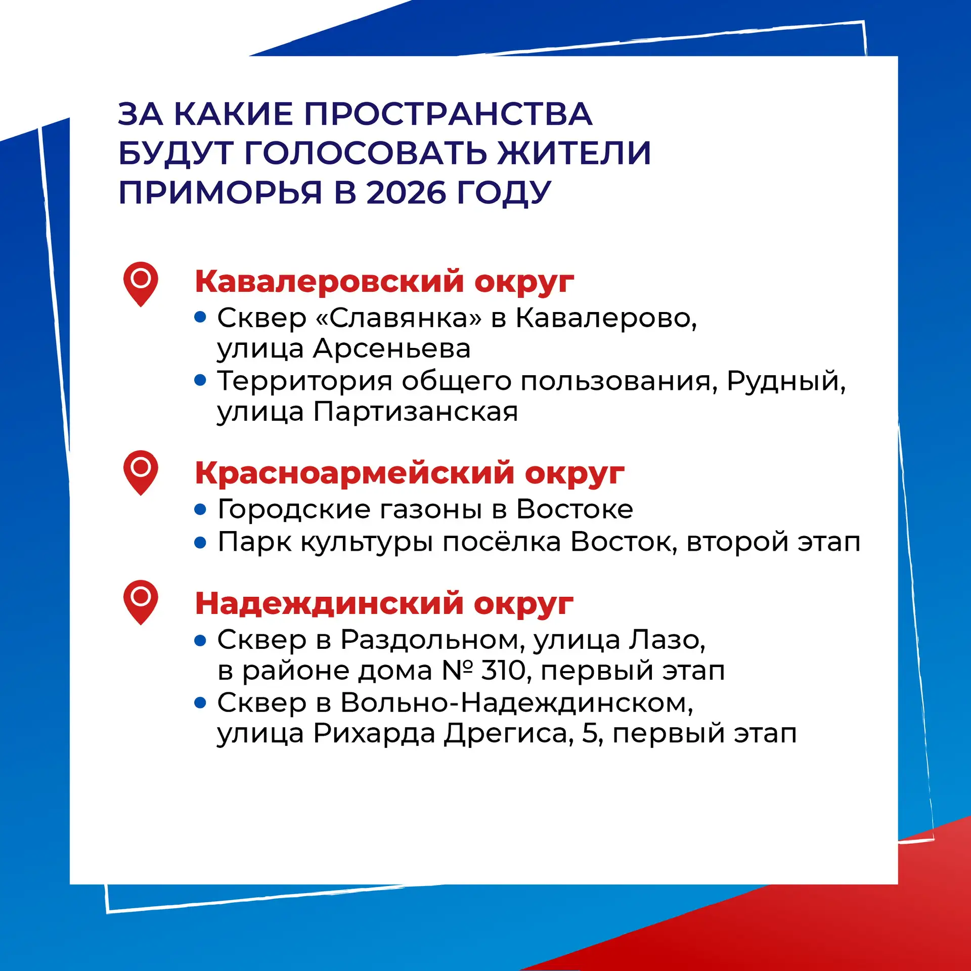 Собрали в карточках места, которые предлагают выбрать жителям Приморья