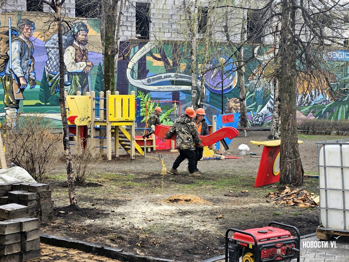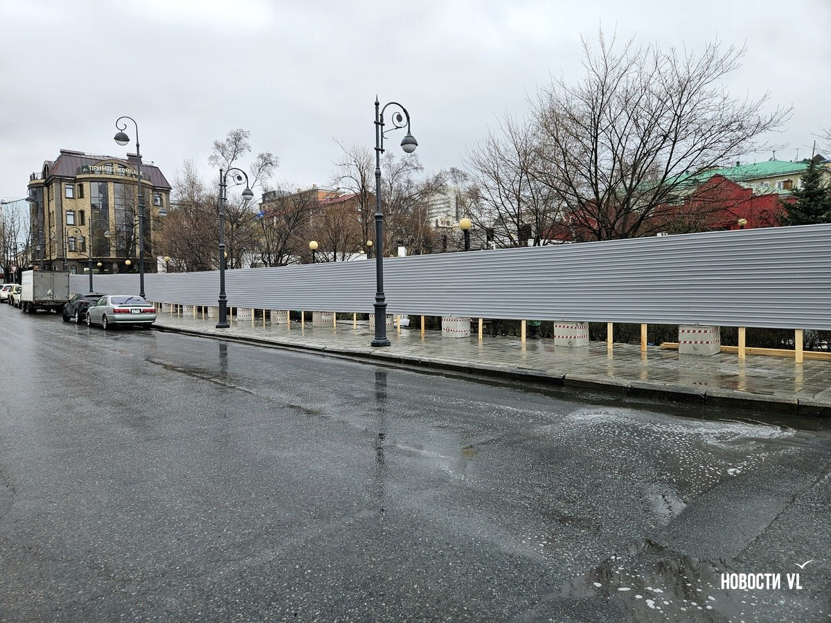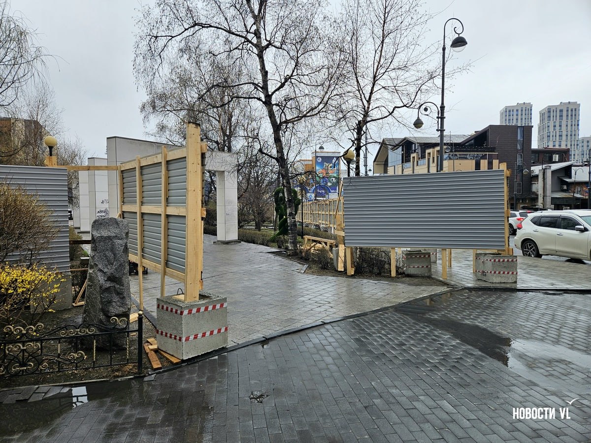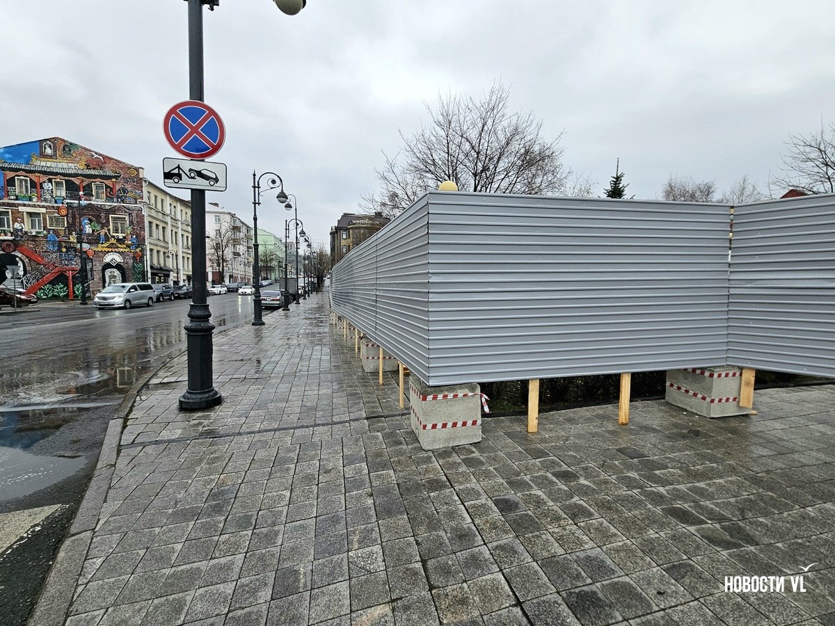 На перекрёстке Семёновской и Пограничной начинается благоустройство сквера Городов-побратимов. Территорию оградили забором, проход через неё теперь перекрыт, есть лишь ворота для заезда техники. Для пешеходов неудобства незначительные – вокруг сквера остался свободен тротуар вдоль проезжей части. За ограждением остались несколько прокатных самокатов – вероятно, позже их уберёт оператор сервиса. Подрядчик тем временем демонтирует старую детскую площадку.