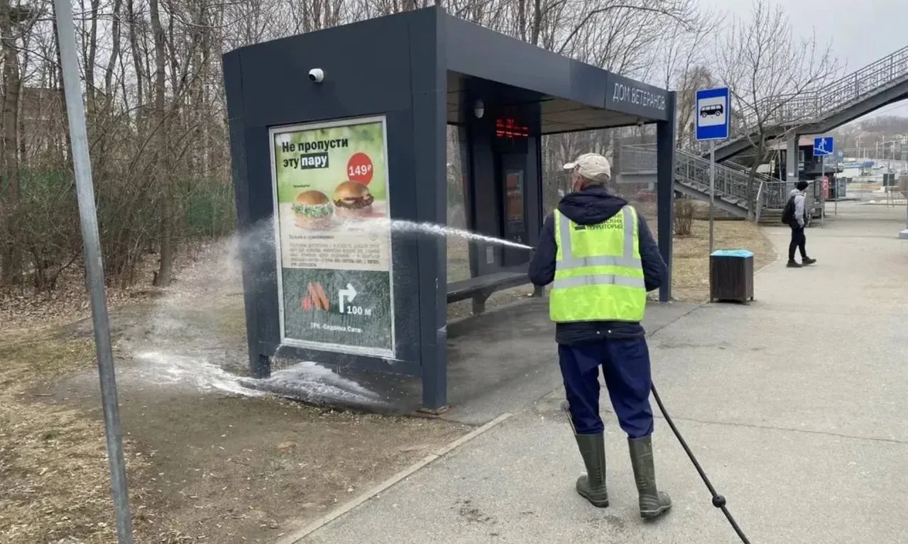 «За неделю мы промываем порядка 30 остановочных павильонов и прилегающих к ним территорий. Специалисты моют их вручную с применением воды и специальных шампуней, а в местах, где нарисованы граффити либо есть незаконные объявления – применяют скребки и щетки», – отметила директор городской службы Елена Кузнецова.