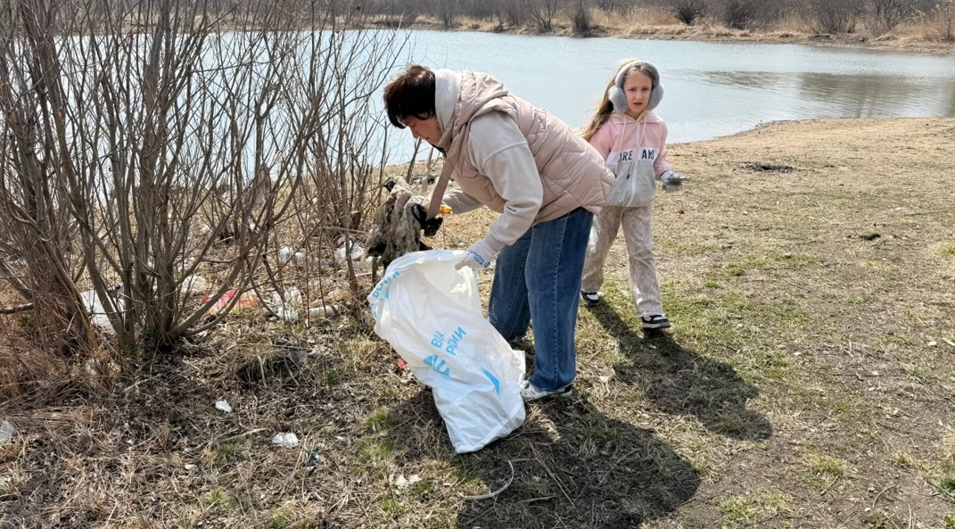В районе Междуречья состоялся масштабный субботник: активные жители очистили берега Лотосового озера и дамбы от мусора.