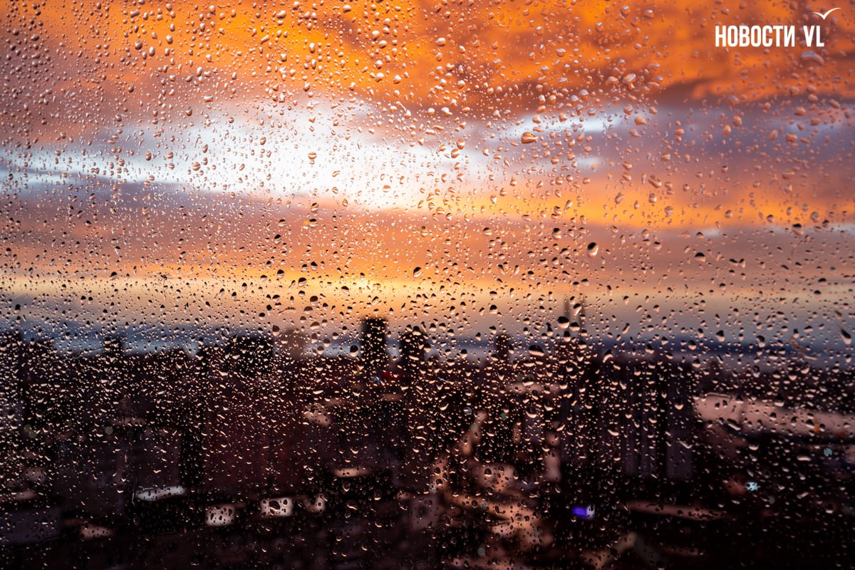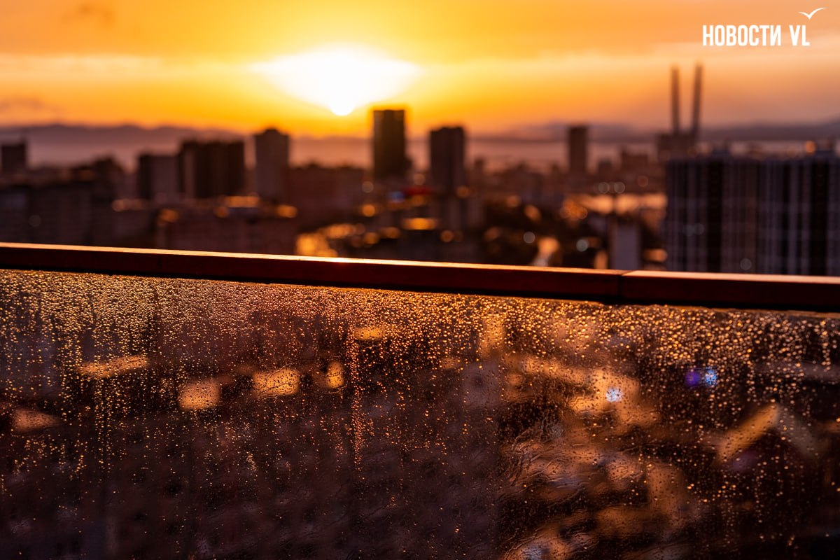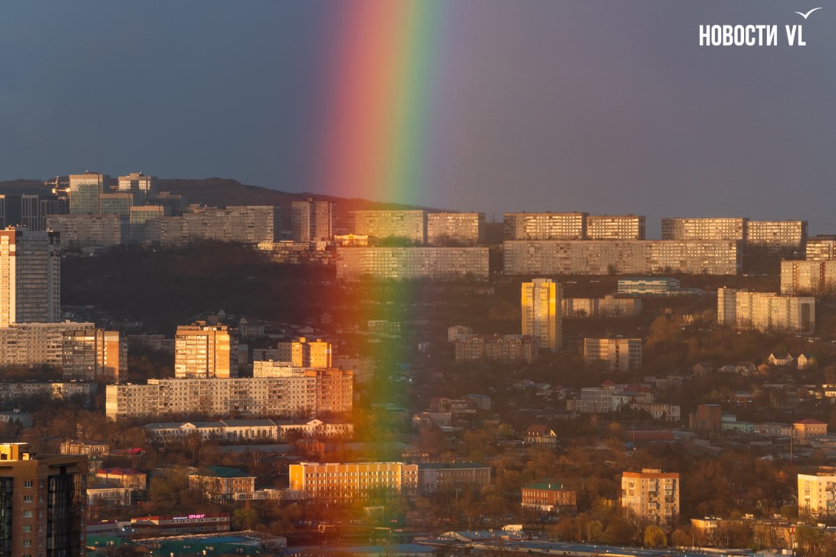 После дождичка в понедельник жители Владивостока увидели радугу и потрясающий закат
