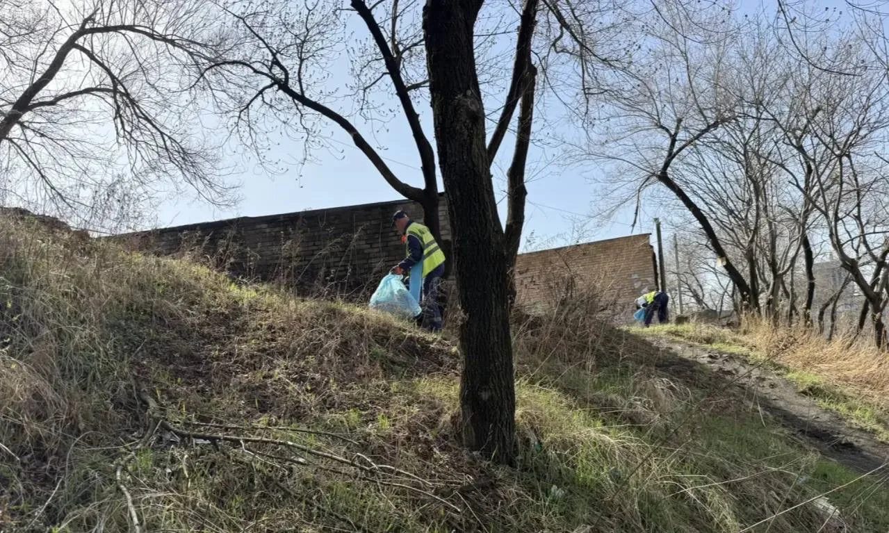Специализированная бригада выполняет уборку случайного мусора на улице Снеговой и проспекте 100-летия Владивостока.