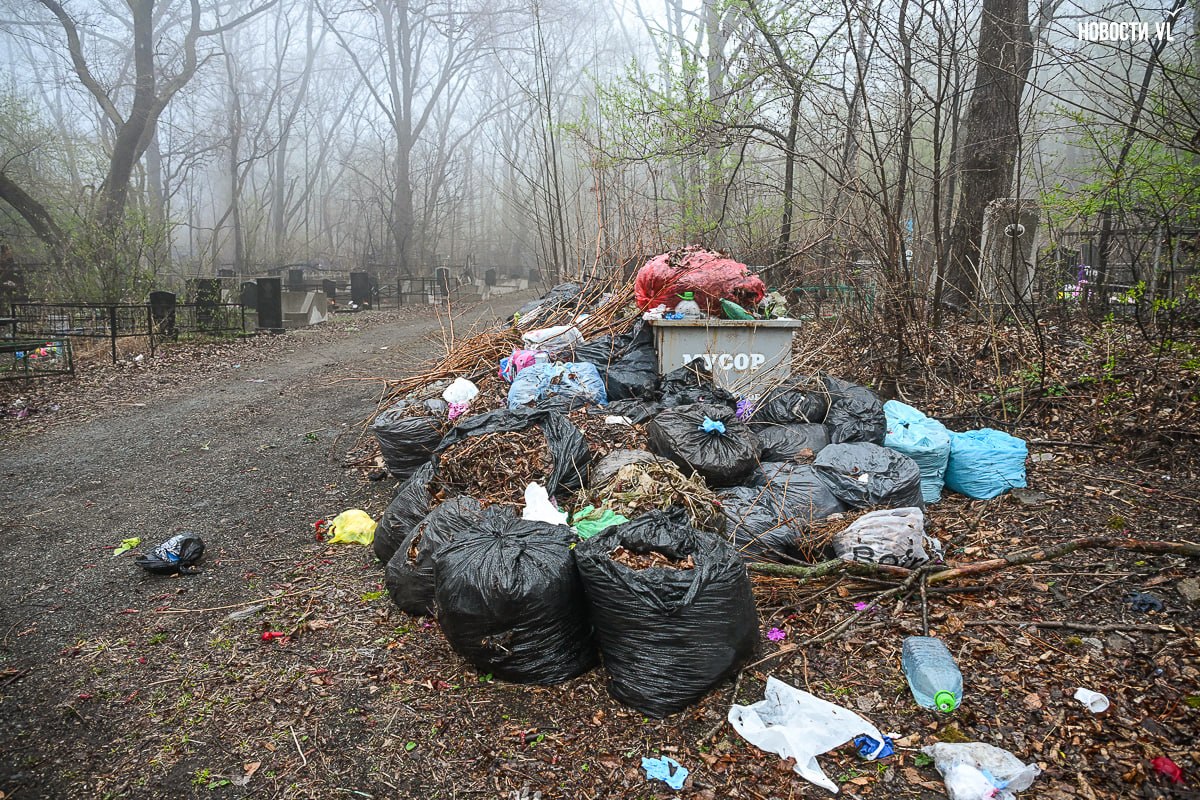 Кучи мешков и грязные туалеты: как кладбища Владивостока выглядят в Радоницу