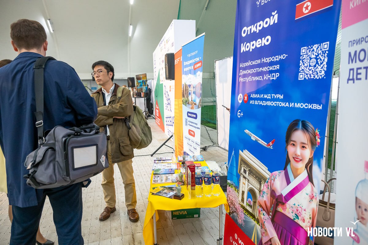 В манеже «Тигр» в районе набережной Спортивной гавани сегодня в очередной раз открылась «всеобщая» выставка товаров и услуг Global Expo Vladivostok. В этом году она вышла довольно скудной – бизнесмены и их представители в основном распределились по периметру, лишь некоторые встали в центре манежа. Здесь можно увидеть турфирмы, научно-производственные компании, продавцов рыбы, колбас и товаров народной медицины, представителей корейского маркетплейса и прочих бизнесменов. Пока гостей немного, в основном они из азиатских стран. Рыбу можно попробовать, а товары – купить, выставка будет работать до 23 апреля.
