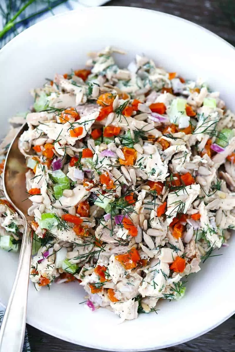 Представляем вашему вниманию куриный салат с курагой, укропом и семечками подсолнуха. Это не просто блюдо, а настоящая палочка-выручалочка для тех, кто ценит минутную скорость приготовления и яркий вкус! Этот салат легко осилить всего за 10 минут, и он сочетает в себе сладкие и пикантные нотки, хрустящую текстуру и ароматный укроп.
