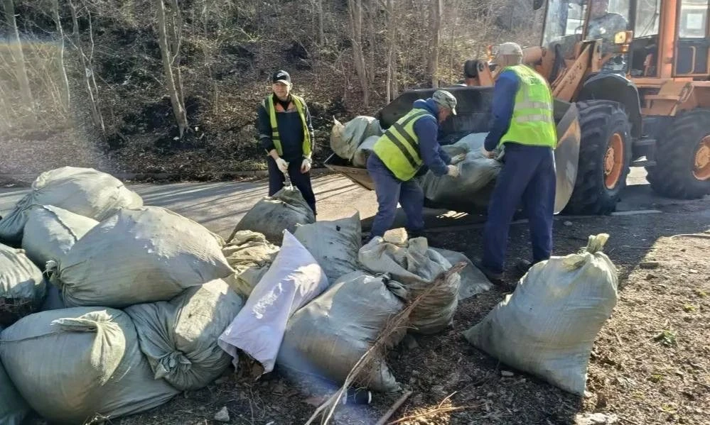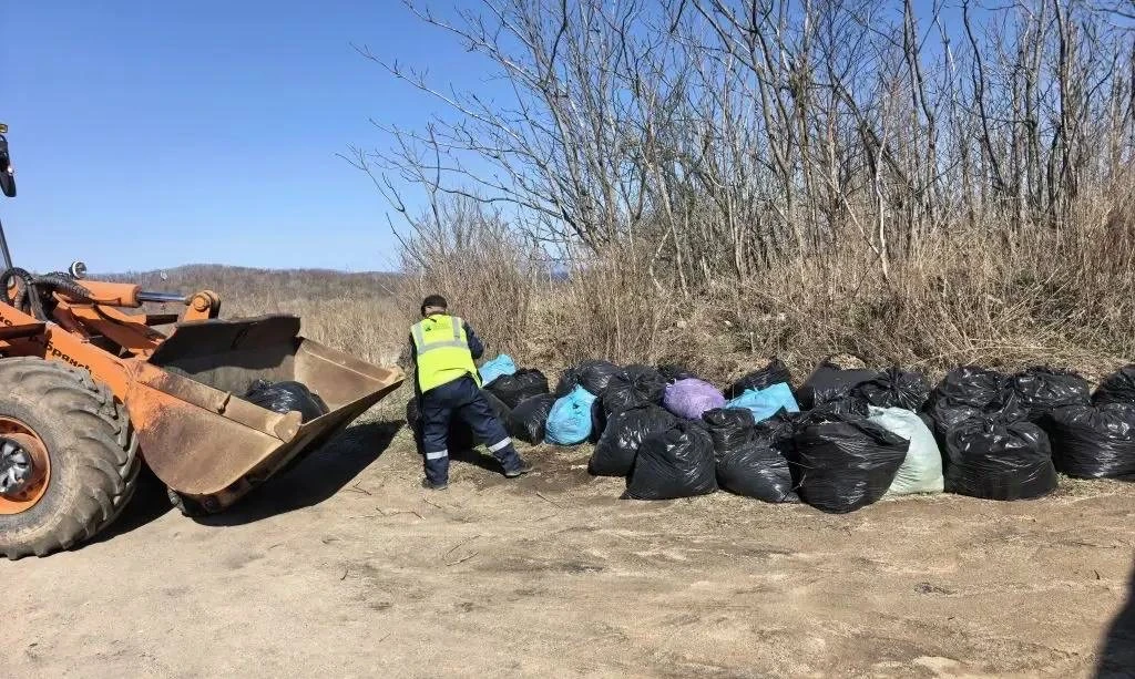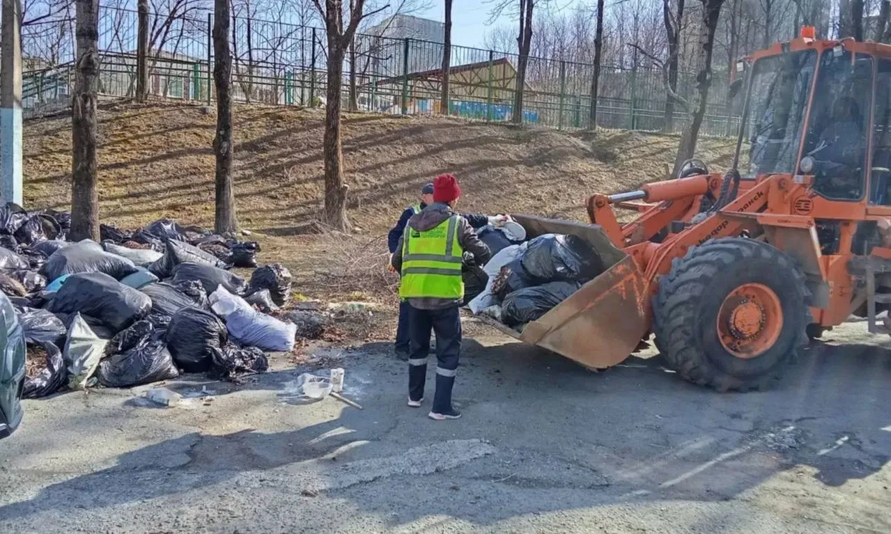 Первореченский район — погрузка и вывоз мешков после субботника по району.