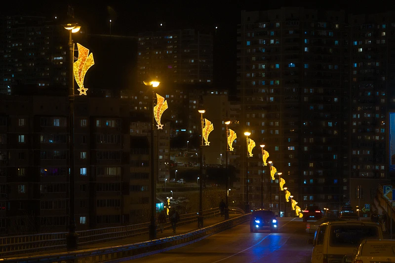 Также в планах украсить Русскую, Океанский проспект, Алеутскую, Светланскую. Кроме того, световые конструкции будут установлены на надземных пешеходных переходах от остановки Надибаидзе до района Патрокл.