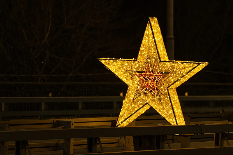 А на Некрасовском путепроводе проезжающих встречают 12 объемных звезд.