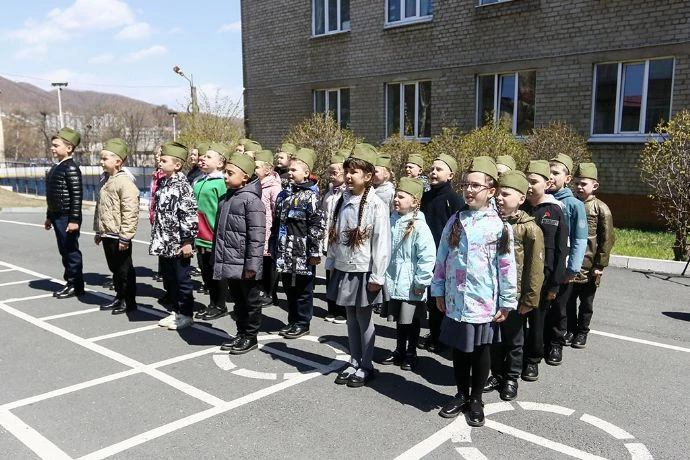 Первоклассники средней школы №25 «Гелиос» готовятся к важному событию – они примут участие в международном параде «Правнуки Победы» во Владивостоке. Ребята уже больше месяца осваивают элементы, которые входят в подготовку действующих военнослужащих: строевой и походный шаг, воинское приветствие, равнение.