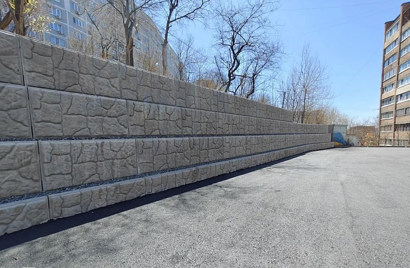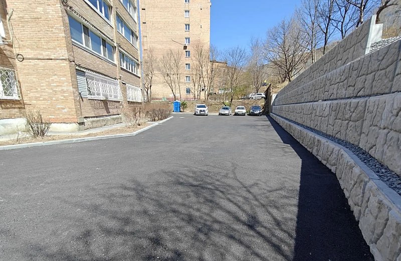 Новую подпорную стену возвели во дворе домов № 34 и 42 на улице Спиридонова. Работы выполнила подрядная организация - «ВладГрад».