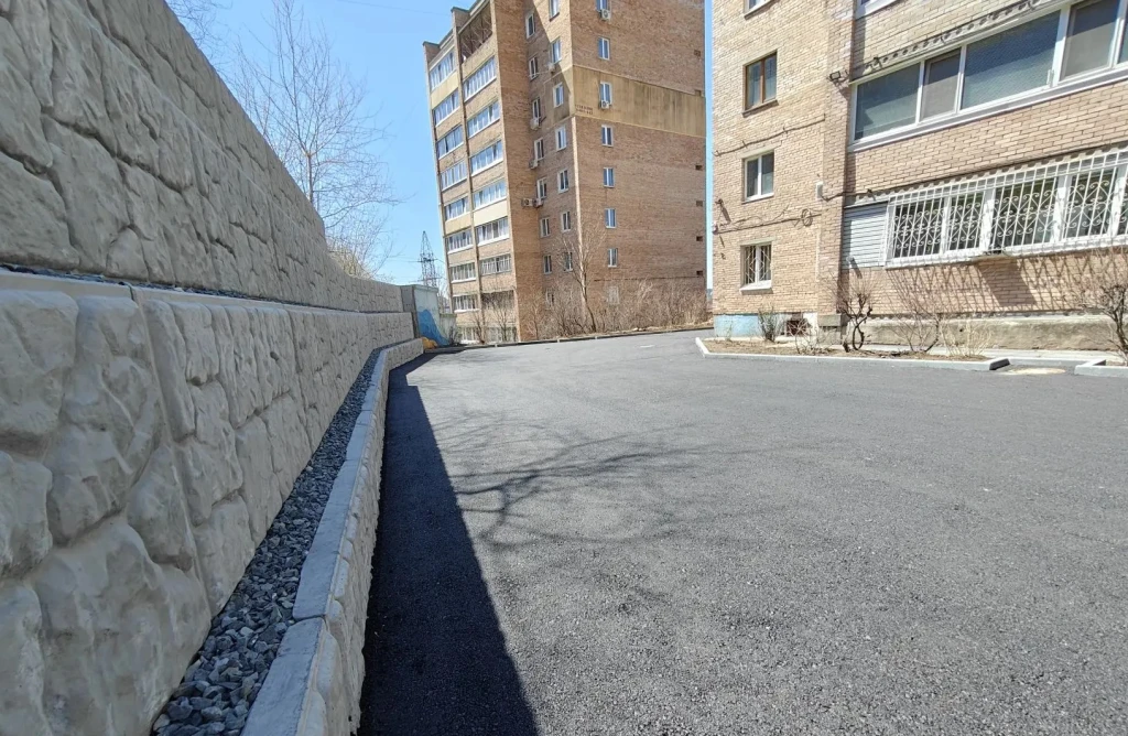 Новая подпорная стена появилась у жителей Спиридонова во дворе домов № 34 и 42 во Владивостоке.