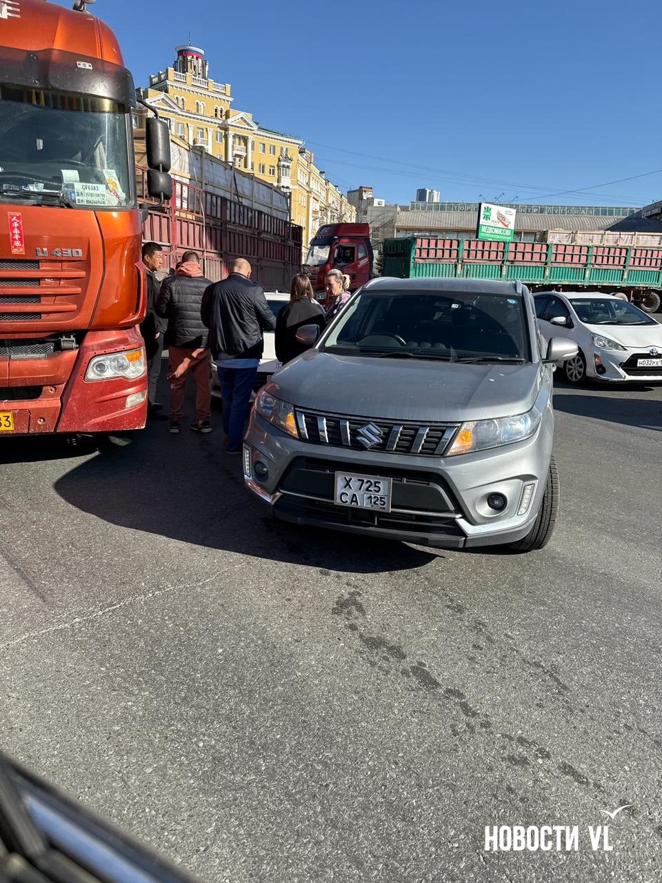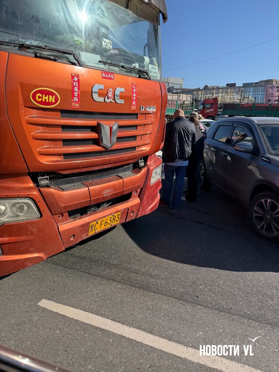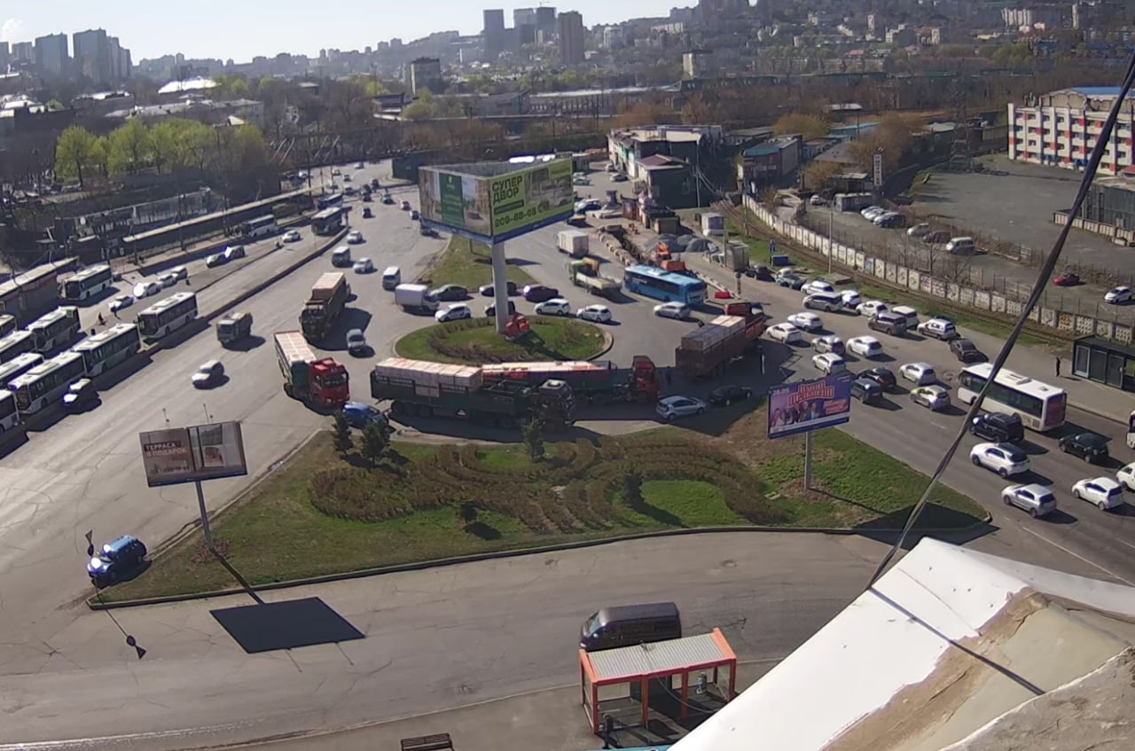 Сейчас на кольце скопилось несколько длинномеров, которые, судя по всему ждут своего коллегу (участника ДТП). Для проезда в сторону Спортивной осталась одна полоса.Подпишись на NewsVL.ru
