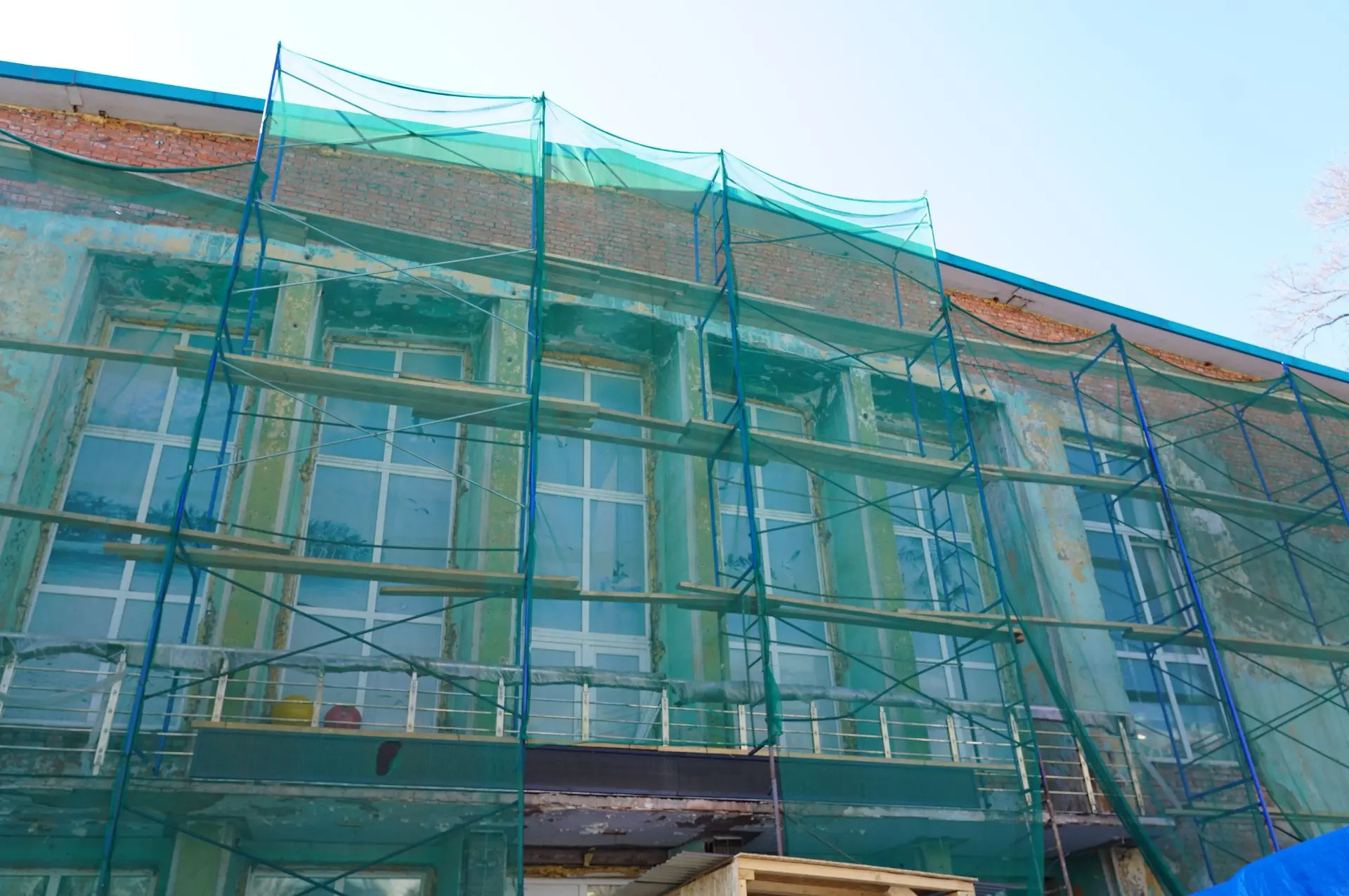 В бассейне «Чайка» идёт капитальный ремонт фасада. Демонтаж полностью завершён, сейчас подрядчик устанавливает подсистему для новых фасадных панелей. Окончание работ запланировано на конец августа.