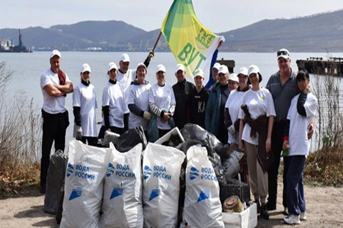 Сотрудники Восточно-Уральского Терминала очистили от мусора пляж бухты Врангеля