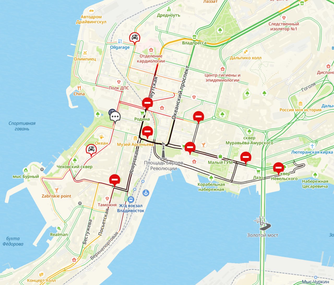 Сегодняшнее перекрытие центра Владивостока снова собрало пробки. Особенно затруднено движение сейчас со стороны Эгершельда. Снять перекрытие должны в 00:00.