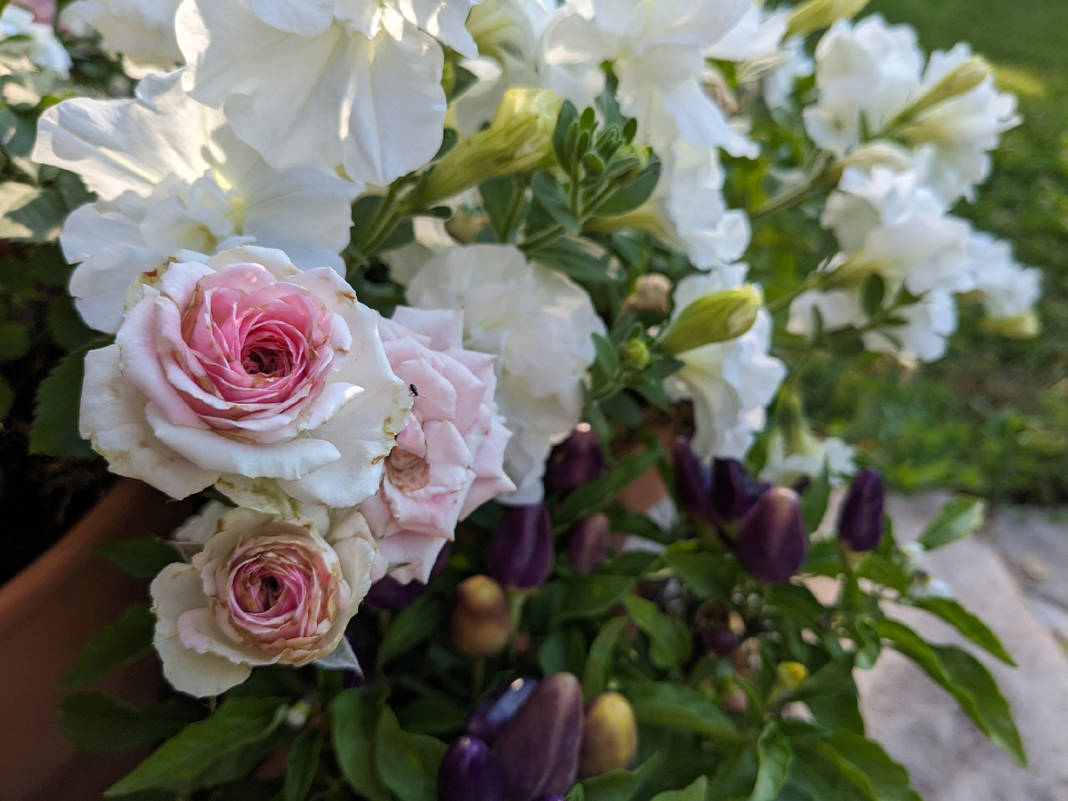 Mimi Eden превратилась в настоящую «звезду» парадного крыльца, привлекая внимание многими любителями цветов. Она прекрасно смотрится в терракотовом горшке, на фоне неожиданных компаньонов, подчеркивающих ее красоту и уникальность. Напротив, в саду она терялась и не приносила той радости, что сейчас с ней наблюдается.