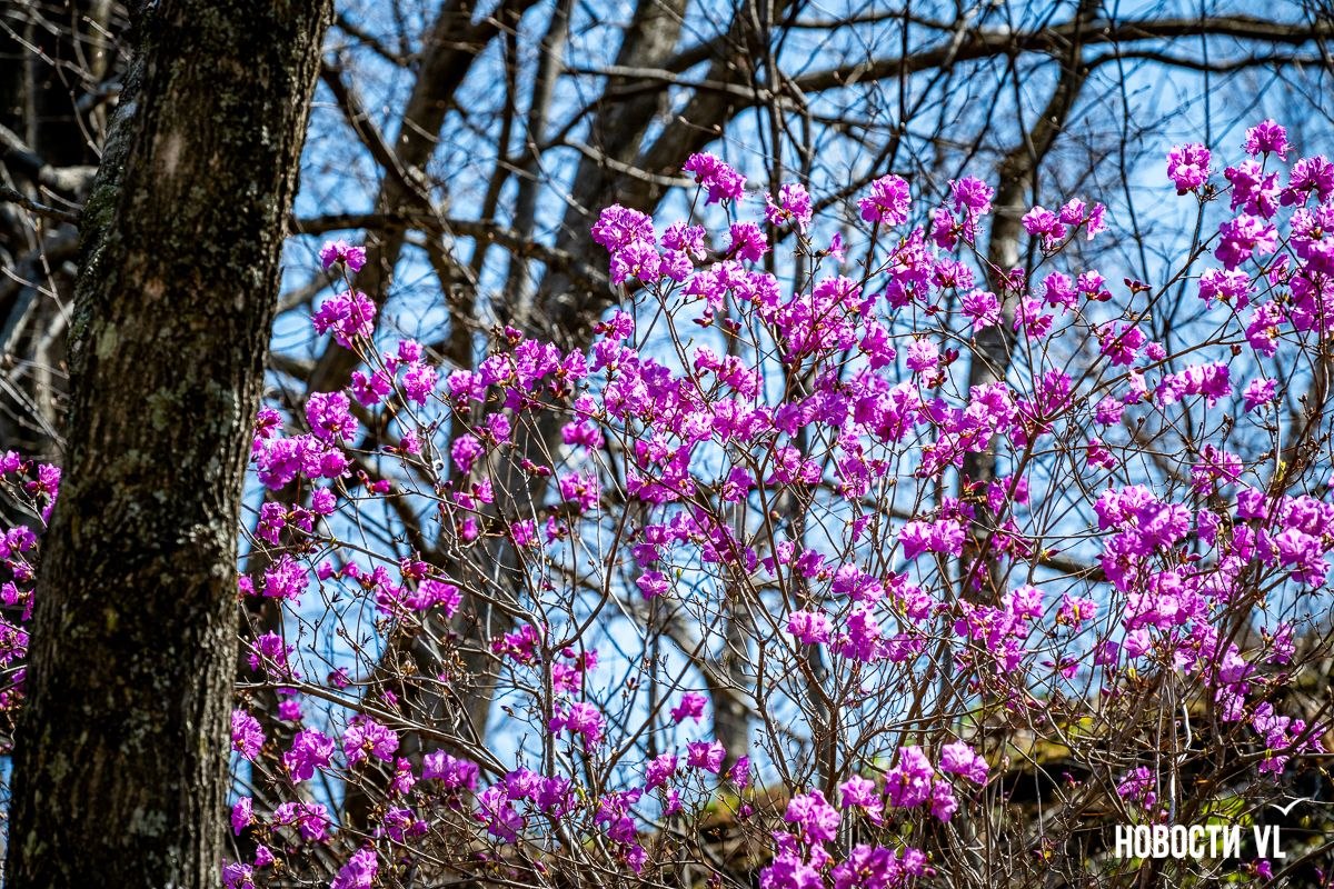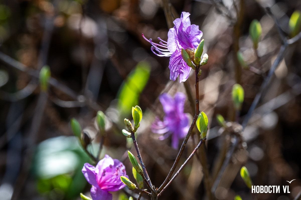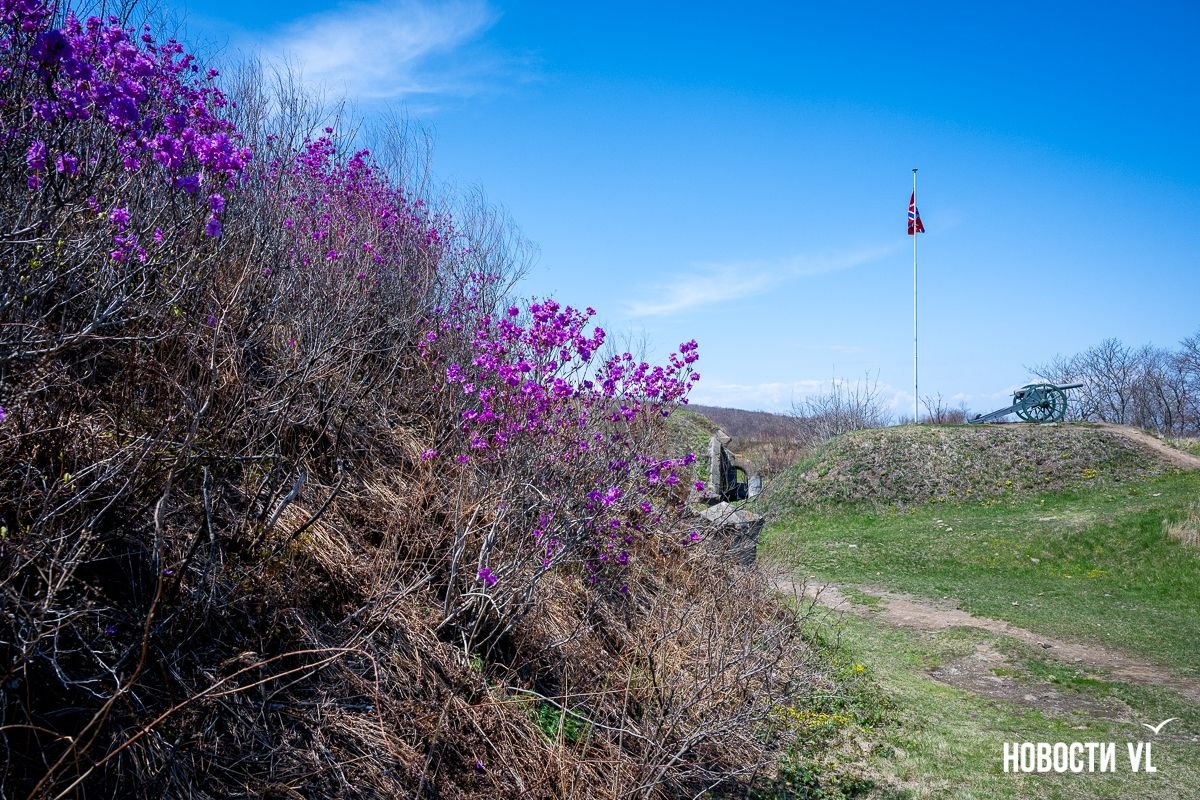Начинается пик цветения рододендрона – неофициального и, пожалуй, самого нежного символа Владивостока. Чтобы увидеть его природное цветение, не обязательно ехать очень далеко. Но одна из самых красивых локаций – форт Поспелова на Русском острове, где лилово-розовые облака уже окутали каменистый ров.