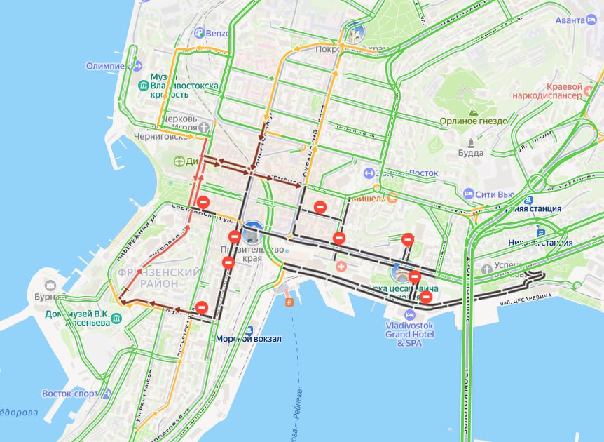 Собралась пробка почти от самой Седанкинской развязки.Фото: 2GisПодпишись на NewsVL.ru