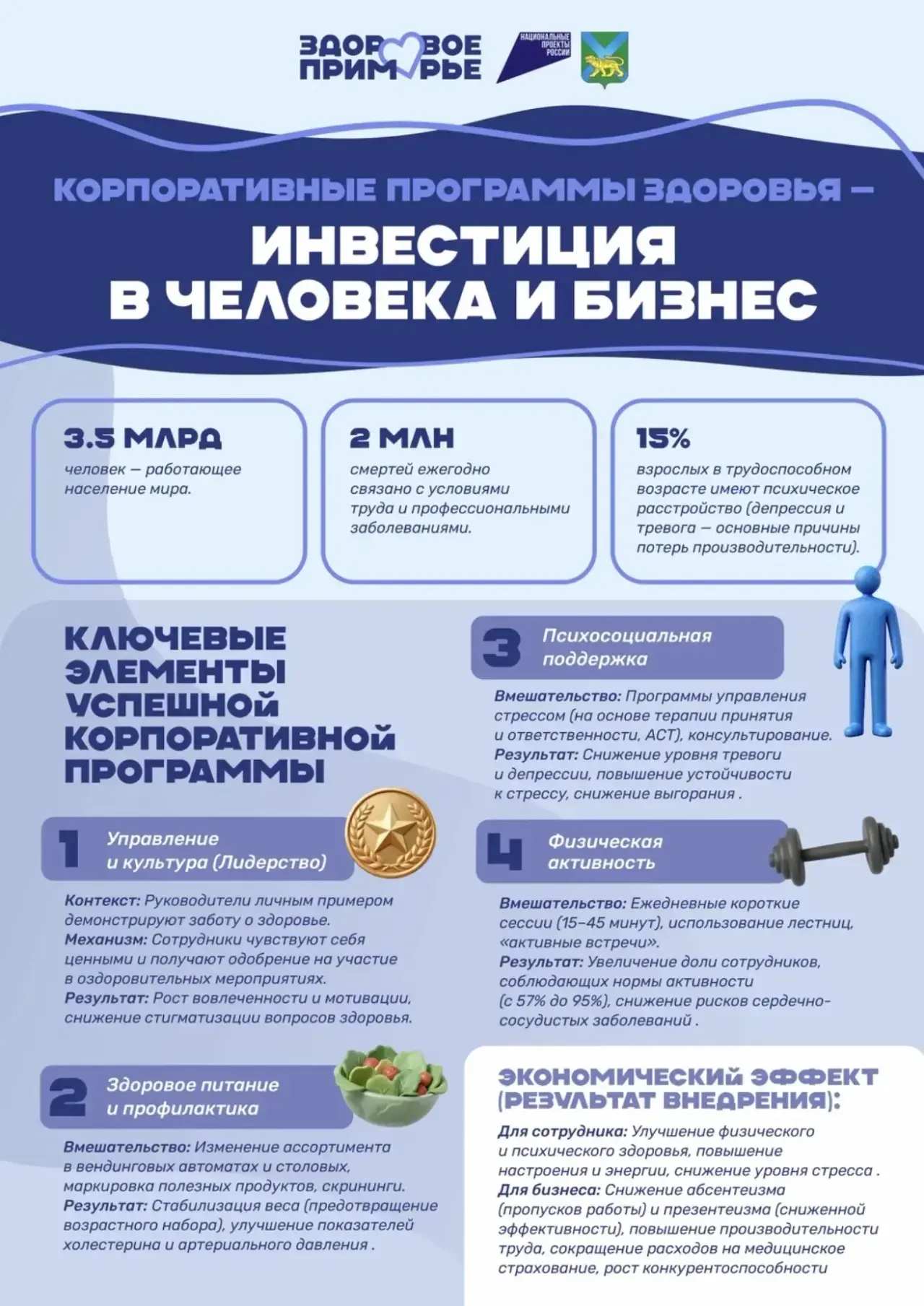 #ЗДОРОВЬЕ_СГТ: С 27 апреля в Приморье стартовала Неделя популяризации лучших практик укрепления здоровья на рабочих местах.