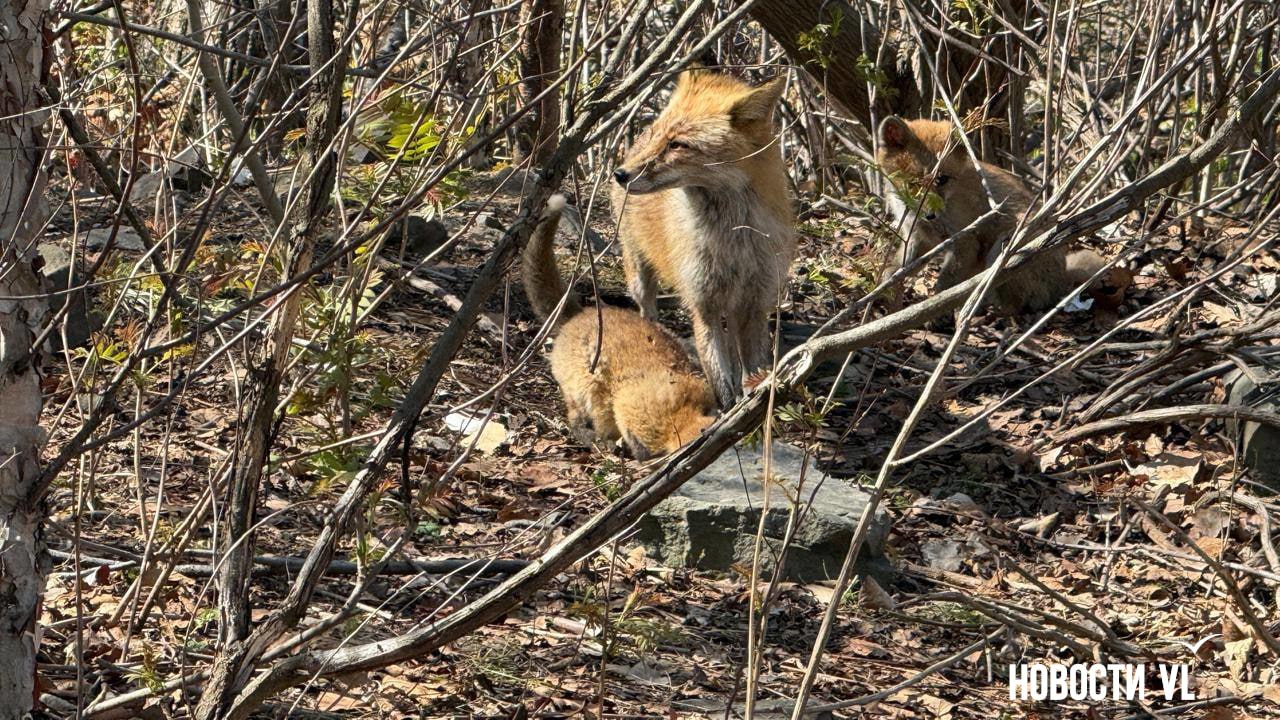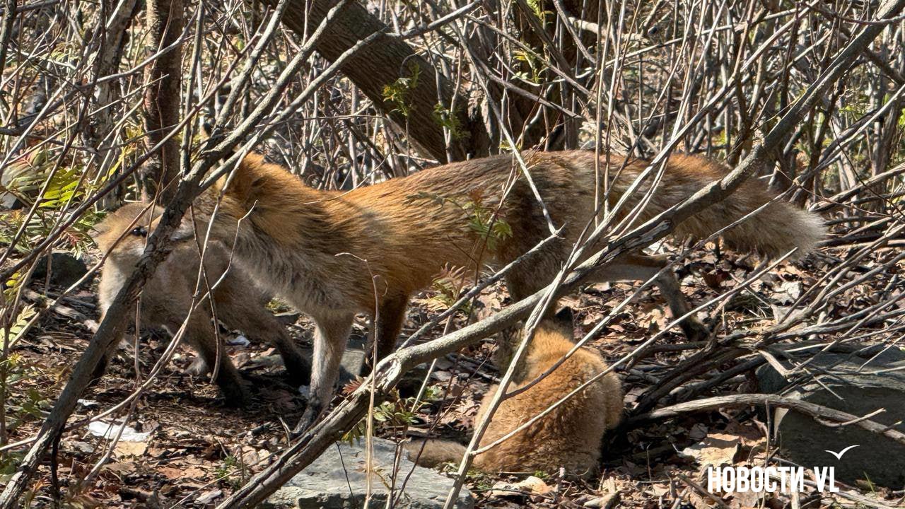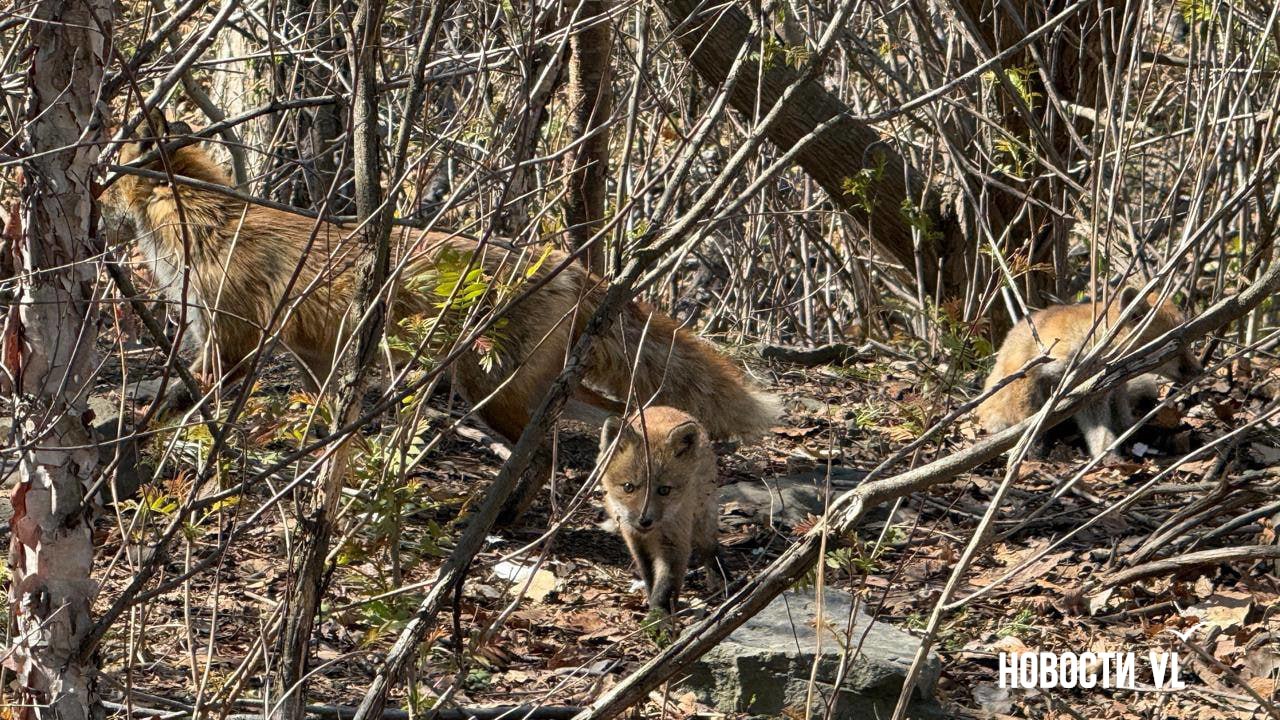 Наша подписчица повстречала сегодня на Русском острове целую лисью семью